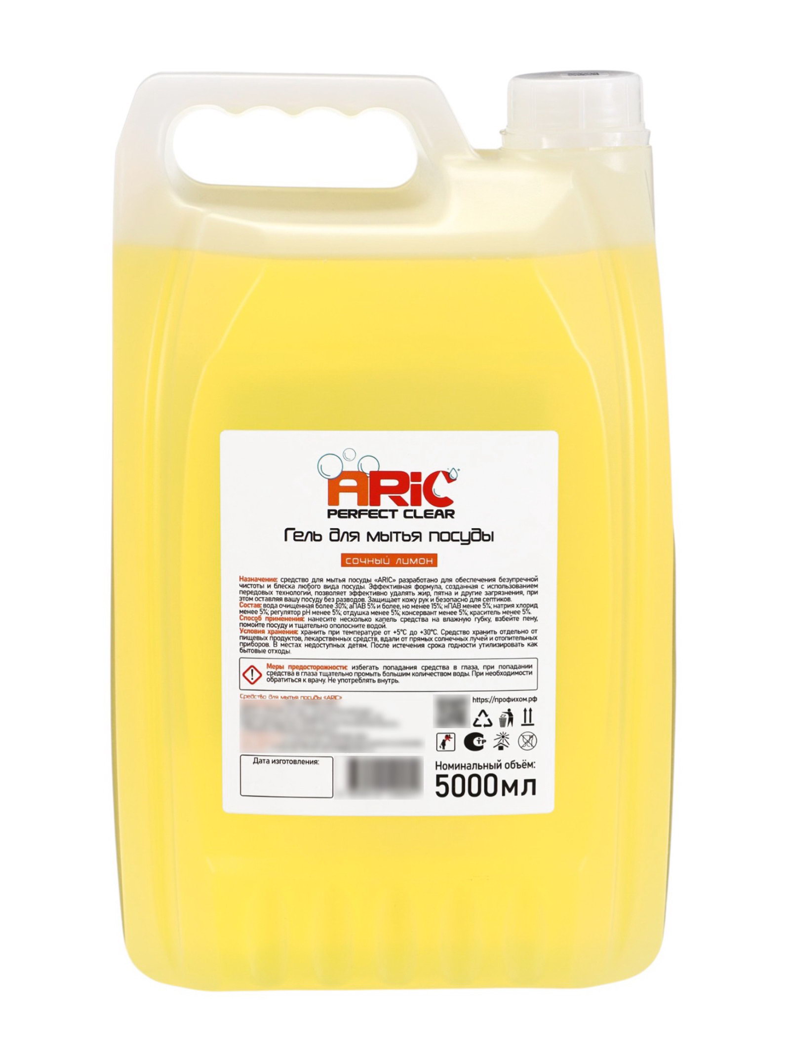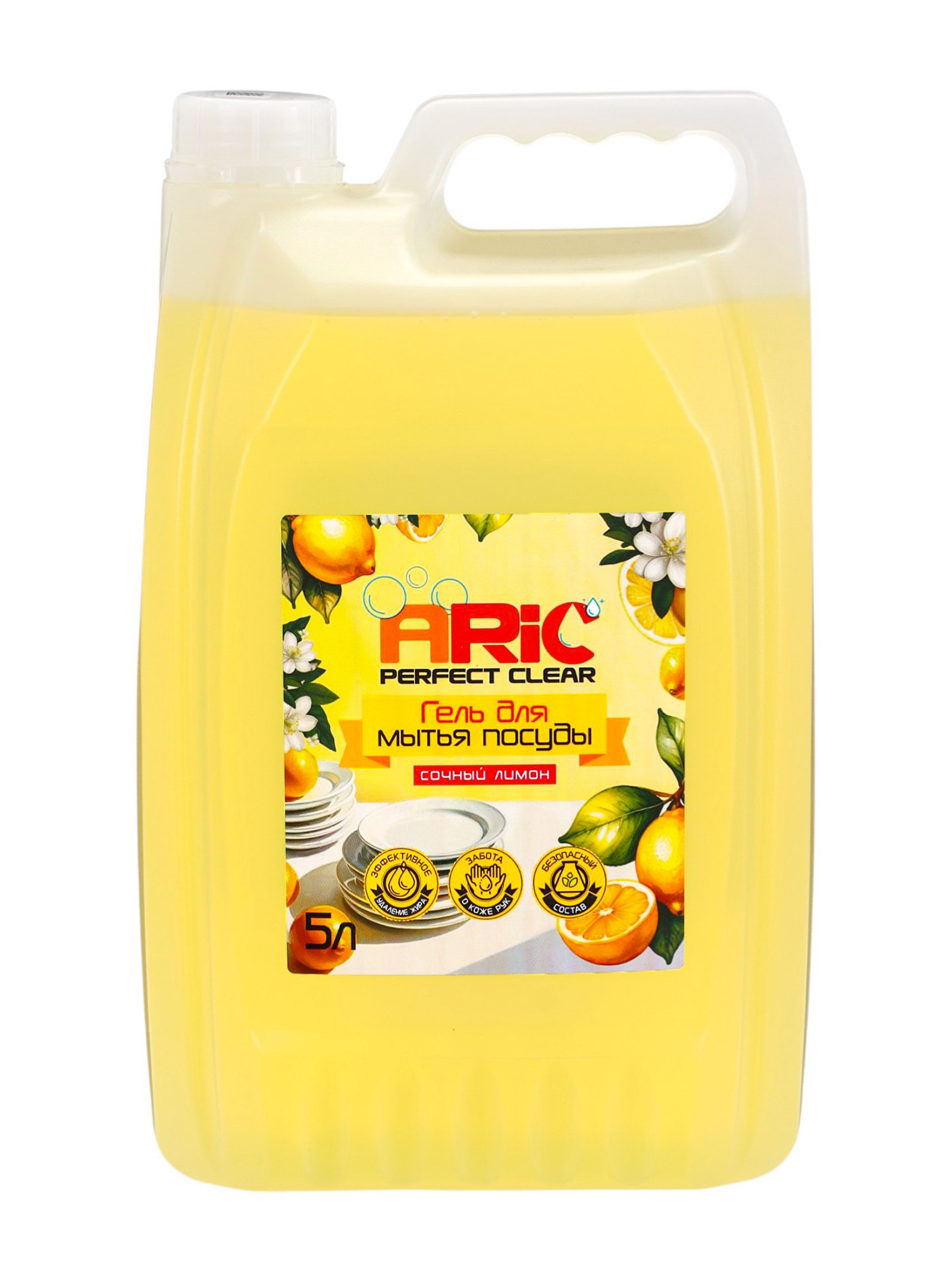 Средство для мытья посуды "Сочный лимон", гель, безопасный состав, 5 л, ARIC, Россия