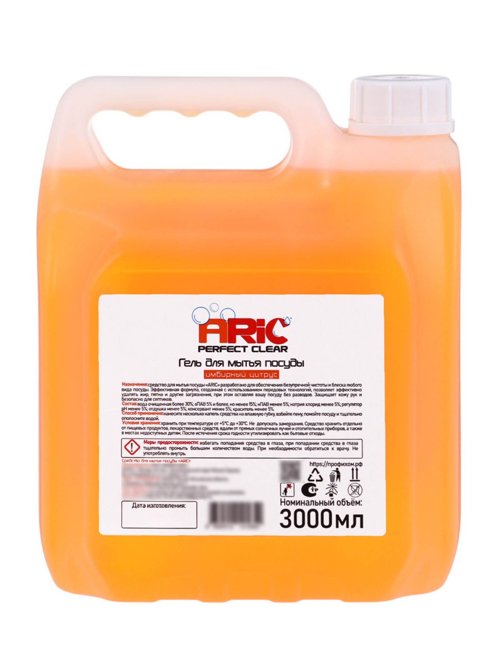 Средство для мытья посуды "Имбирный цитрус", гель, безопасный состав, 3 л, ARIC, Россия