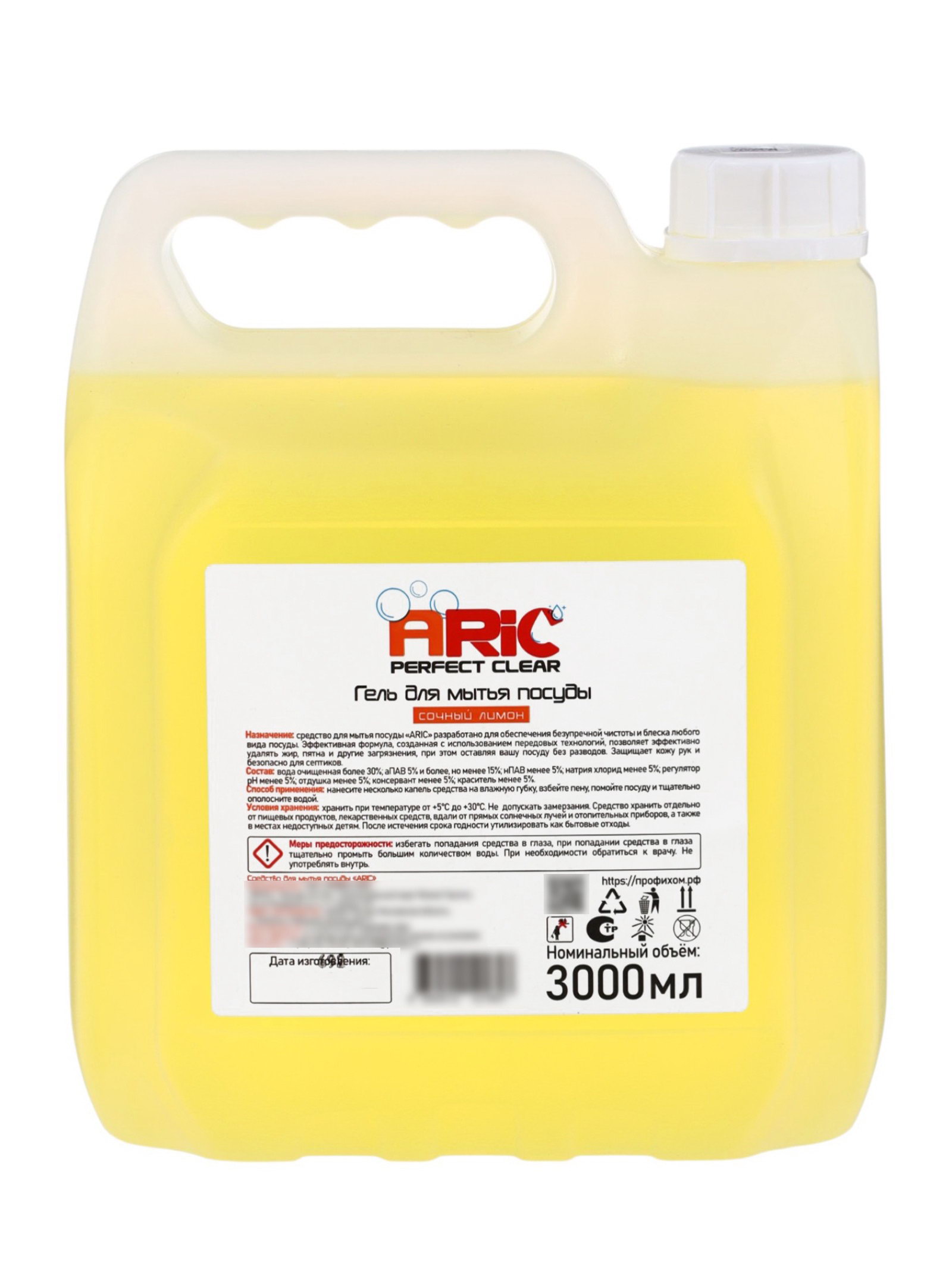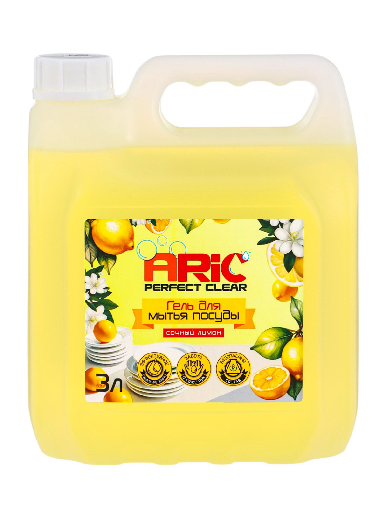 Средство для мытья посуды "Сочный лимон", гель, безопасный состав, 3 л, ARIC, Россия