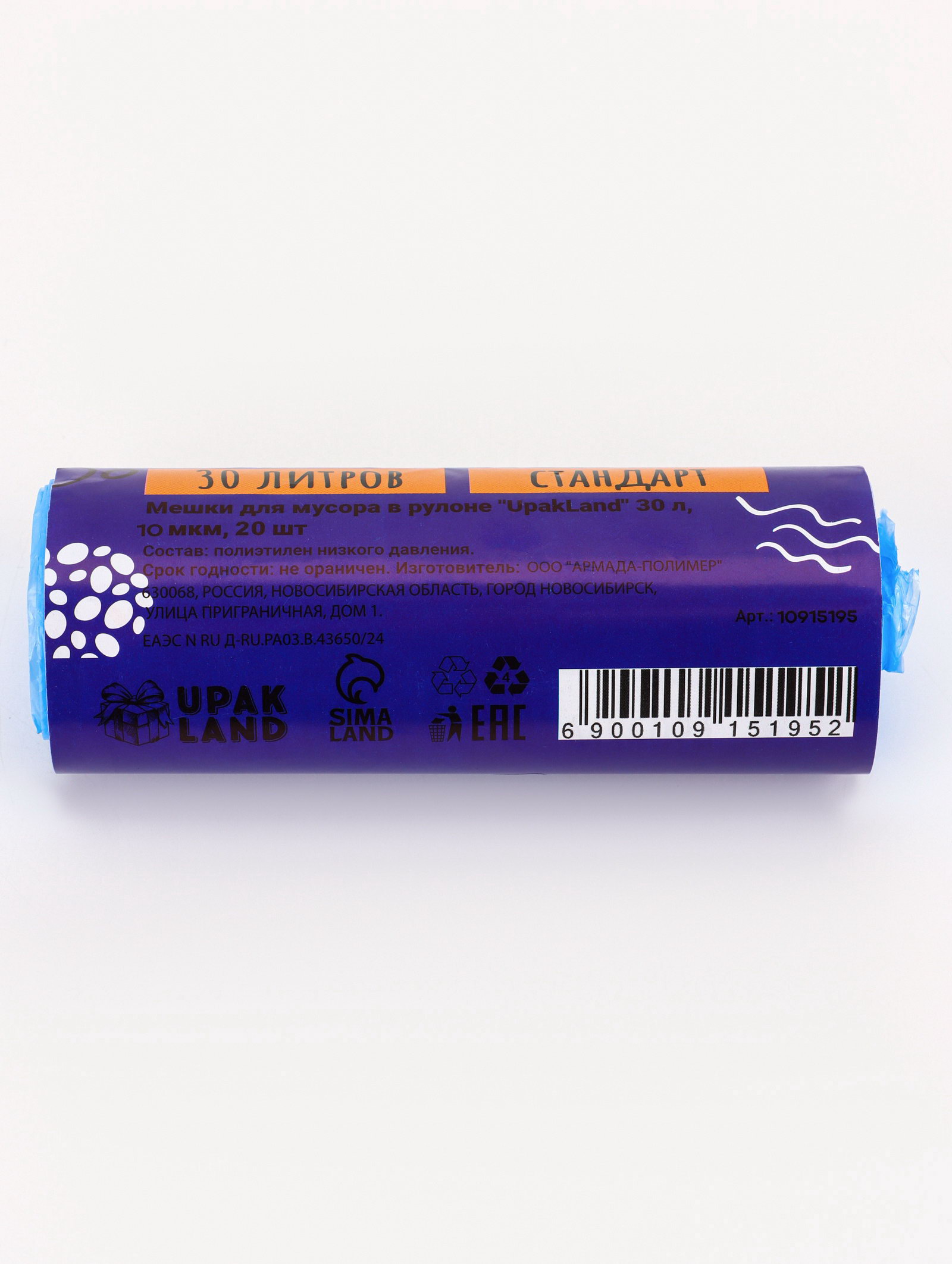 Мешки для мусора 30 л, ПНД, 10 мкм, 20 шт. в рул, синие, 30000 мл., UPAK LAND, Россия