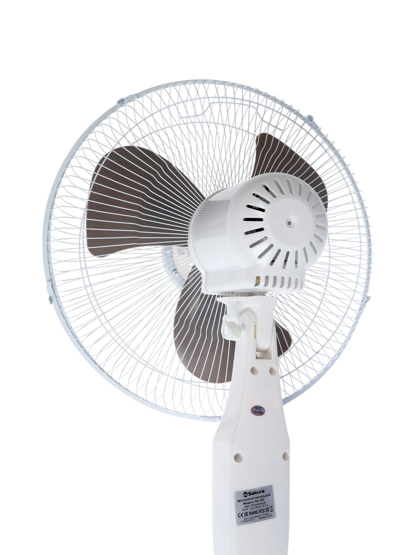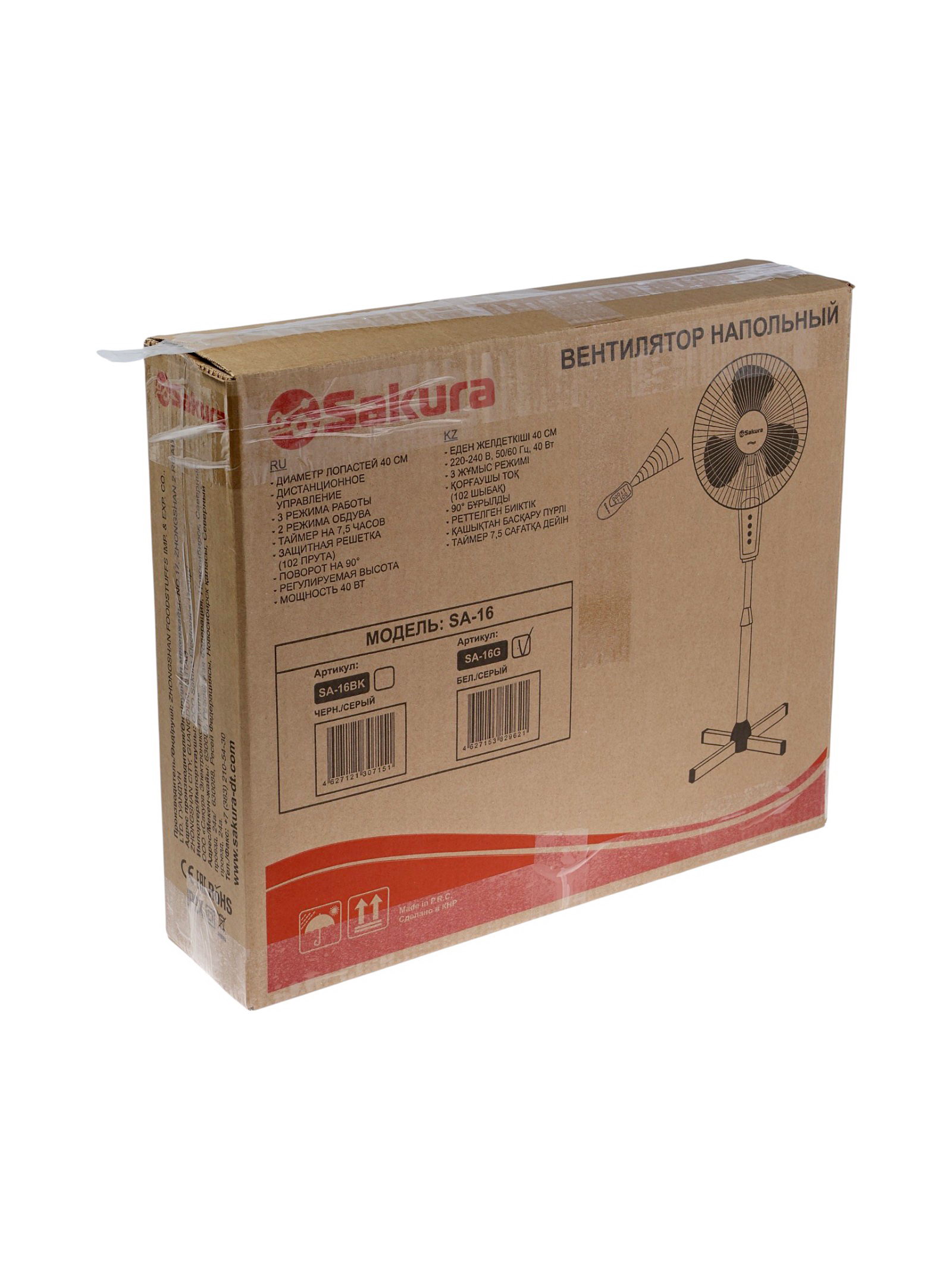 Вентилятор напольный SA-16G, осевой, 40 Вт, 40 см, 3 режима, таймер, с пультом, бело-серый, SAKURA, Китай