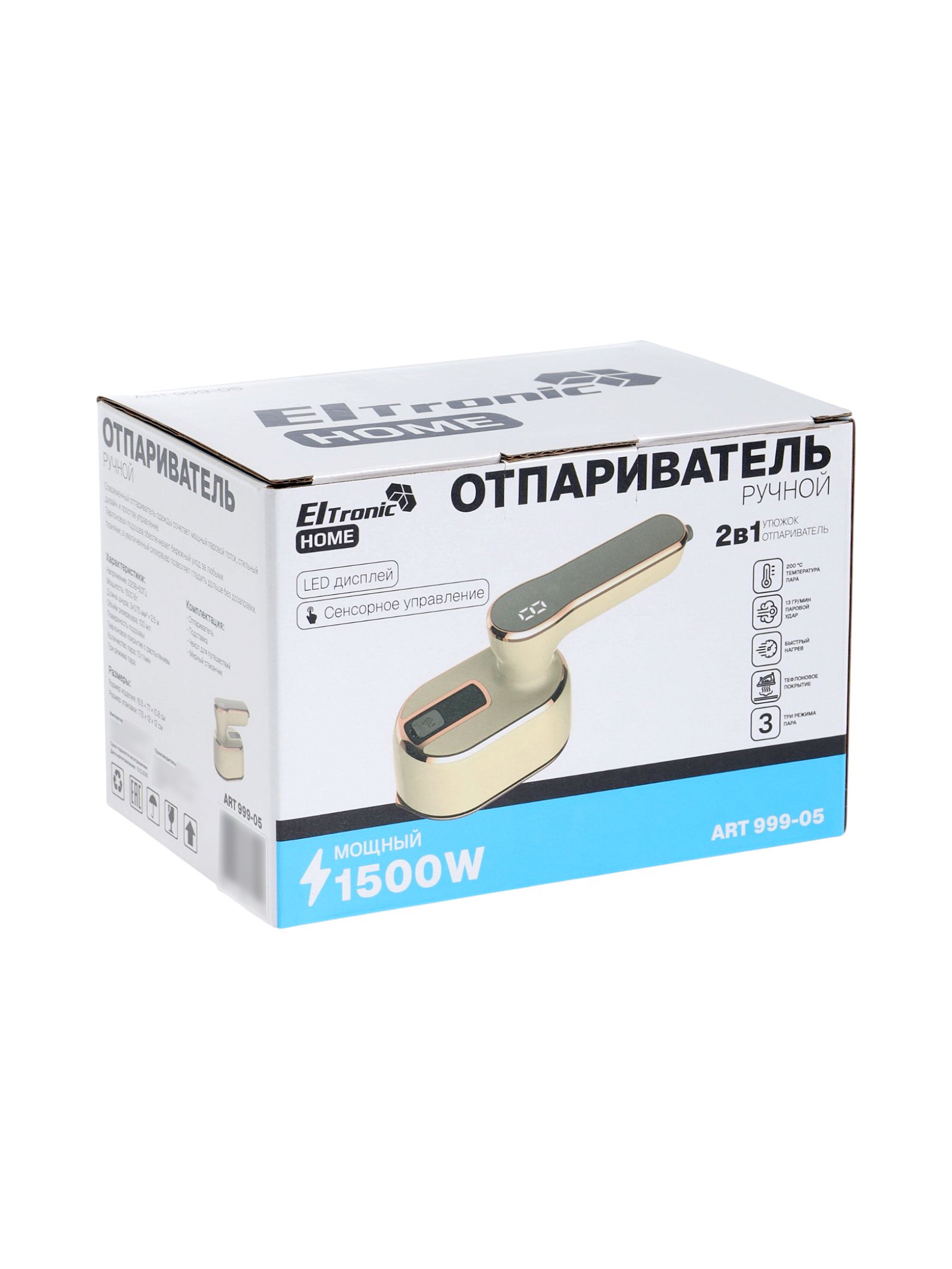Отпариватель ручной 999-05, 1500 Вт, 100 мл, 2.5 м, 20 г/мин, 2 режима, бежевый, ELTRONIC, Китай