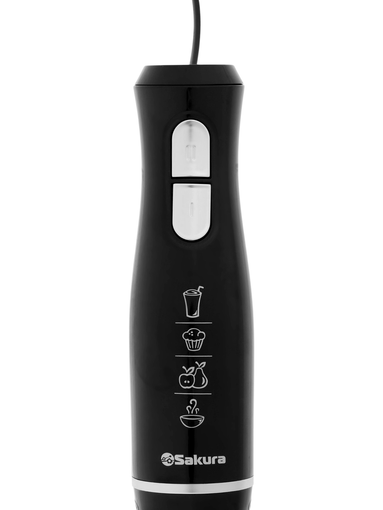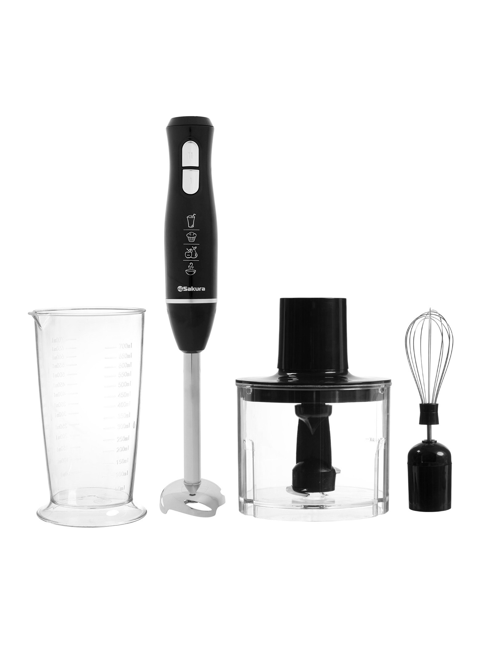 Блендер SA-6266SBK, погружной, 600 Вт, 2 скорости, стакан 0.7 л, чоппер 0.5 л, венчик, SAKURA, Китай