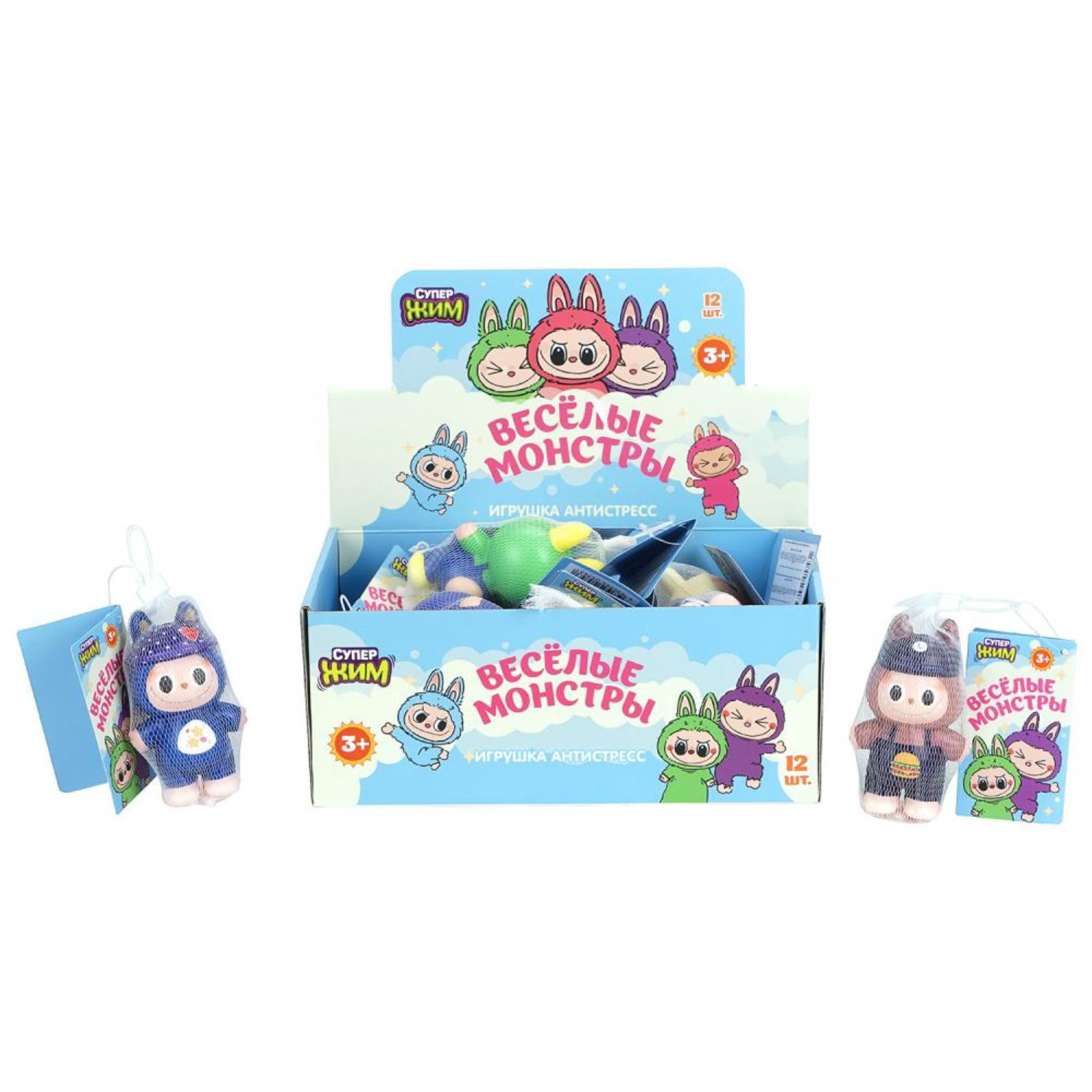 Сквиш антистресс "Веселые монстры", 10 см, в сетке, Китай