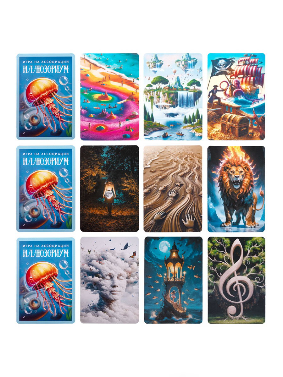 Размер упаковки: 21 x 5 x 21 см. tnved: 9504908000 Температурное ограничение: Нет Количество игроков: [2,6] Возраст: От 8 лет Жанр игры: Бродилки Настольная игра "Иллюзориум" - захватывающая игра на ассоциации и воображение которая погружает участников в мир образов, фантазии и неожиданных ассоциаций. Игрокам предстоит не только угадывать задуманные образы, но и проявлять креативность, придумывая собственные подсказки. Такой формат делает каждую партию уникальной и непредсказуемой, а процесс - по-настоящему захватывающим. Преимущества игры: