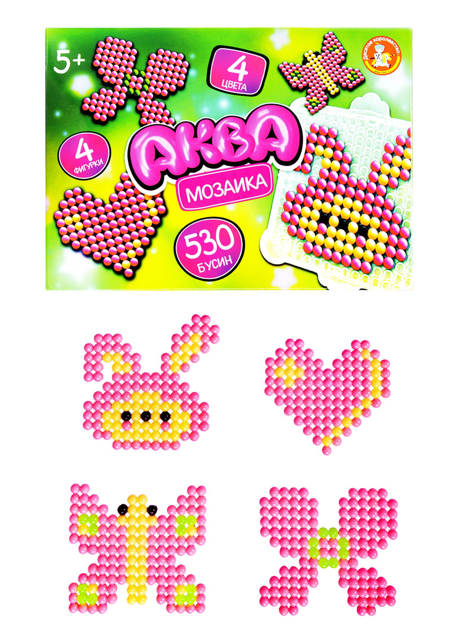 Аквамозаика "Бабочки, сердечки", 4 фигурки, Десятое Королевство, Россия