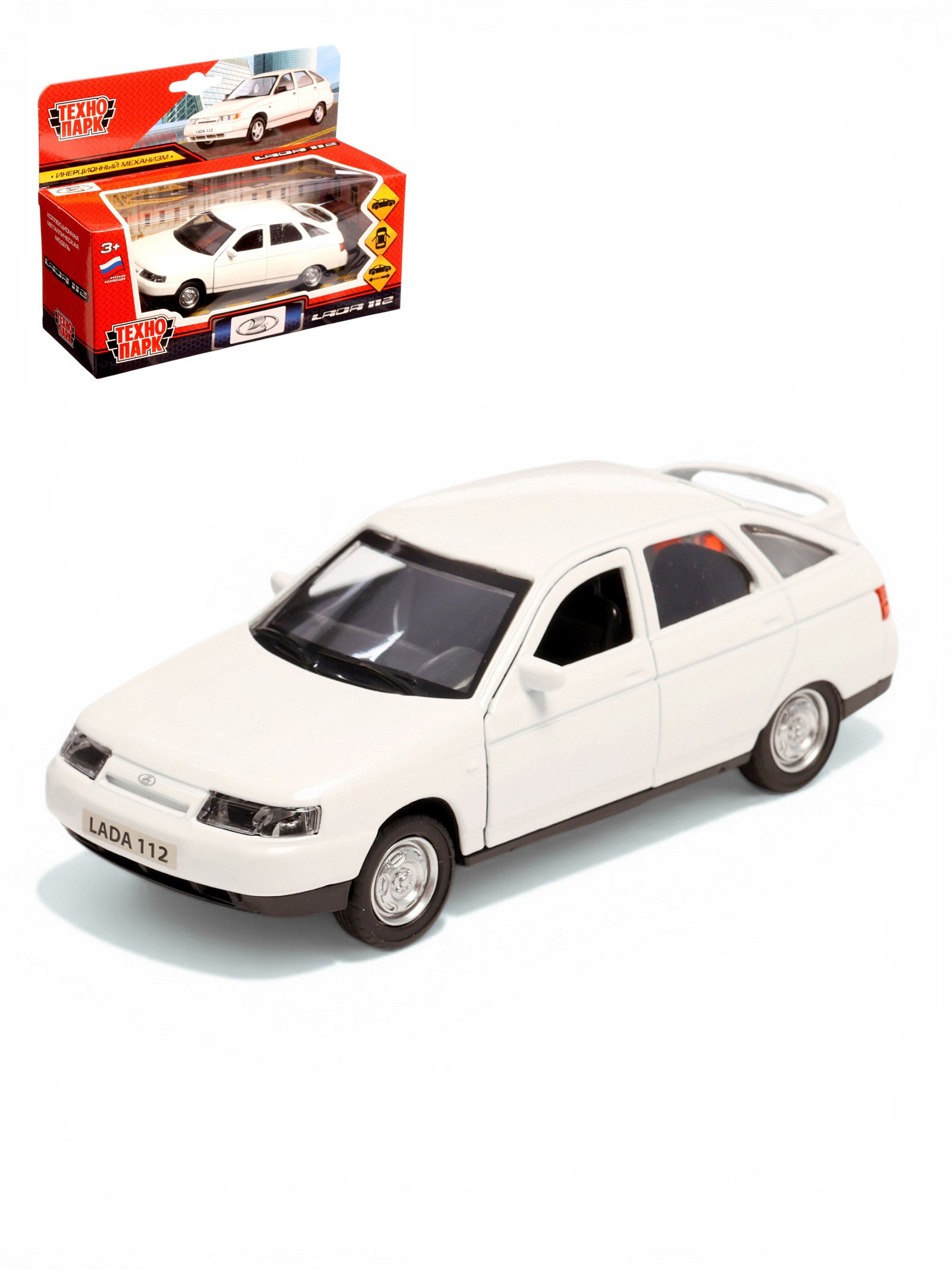 Машинка металлическая "ВАЗ-2112", 12 см, инерция, открываются двери и багажник, белая, Технопарк, Китай