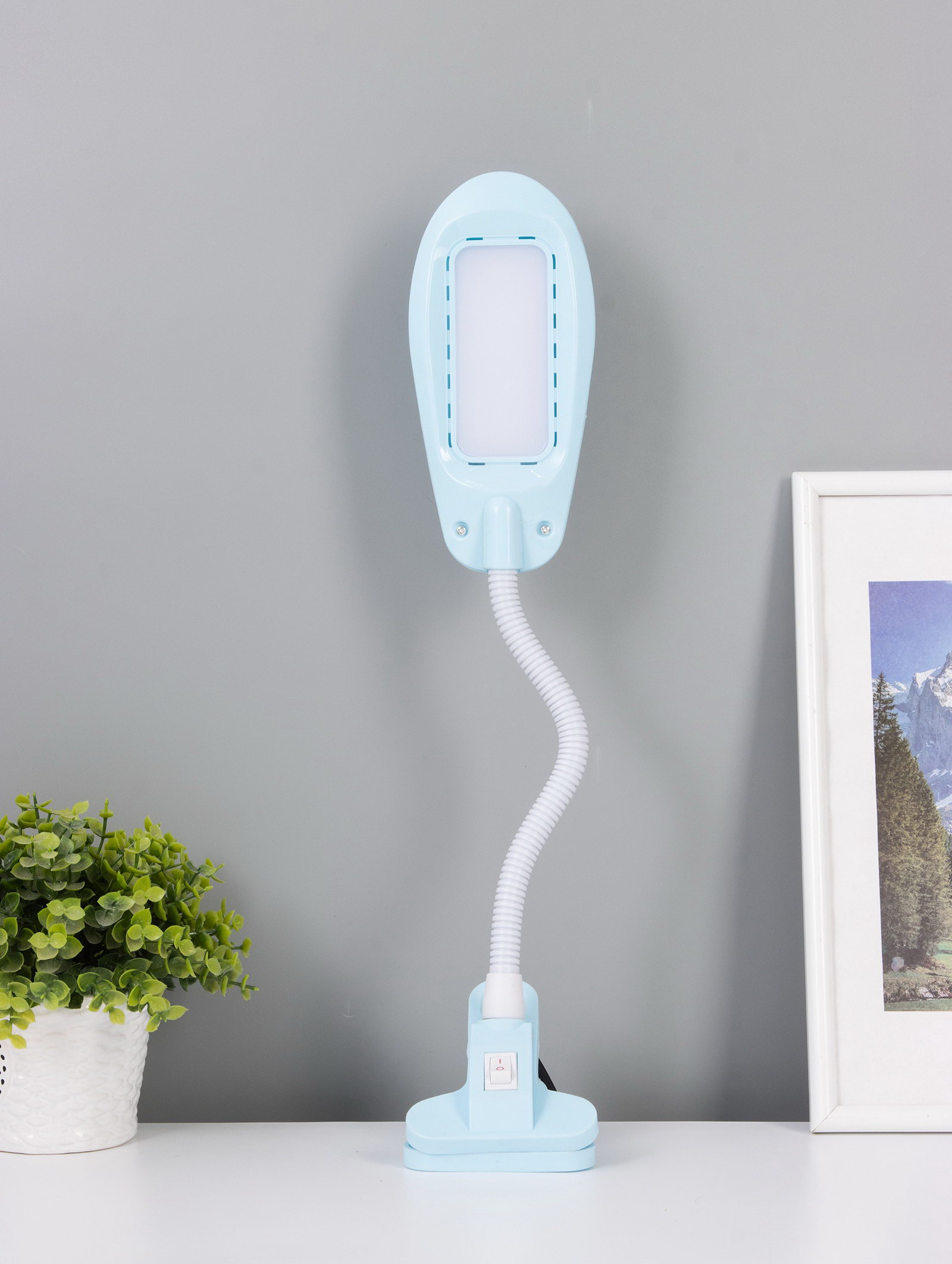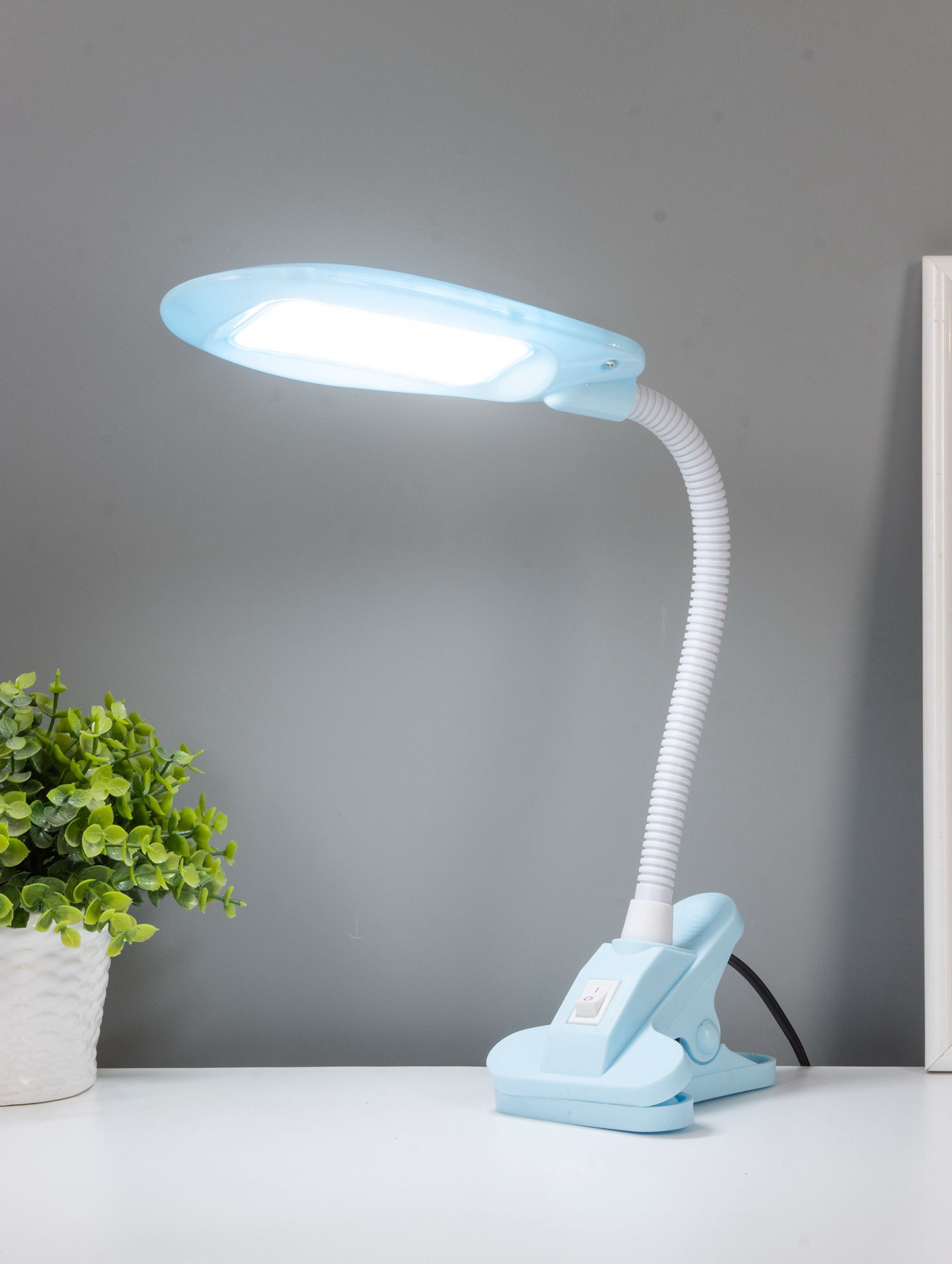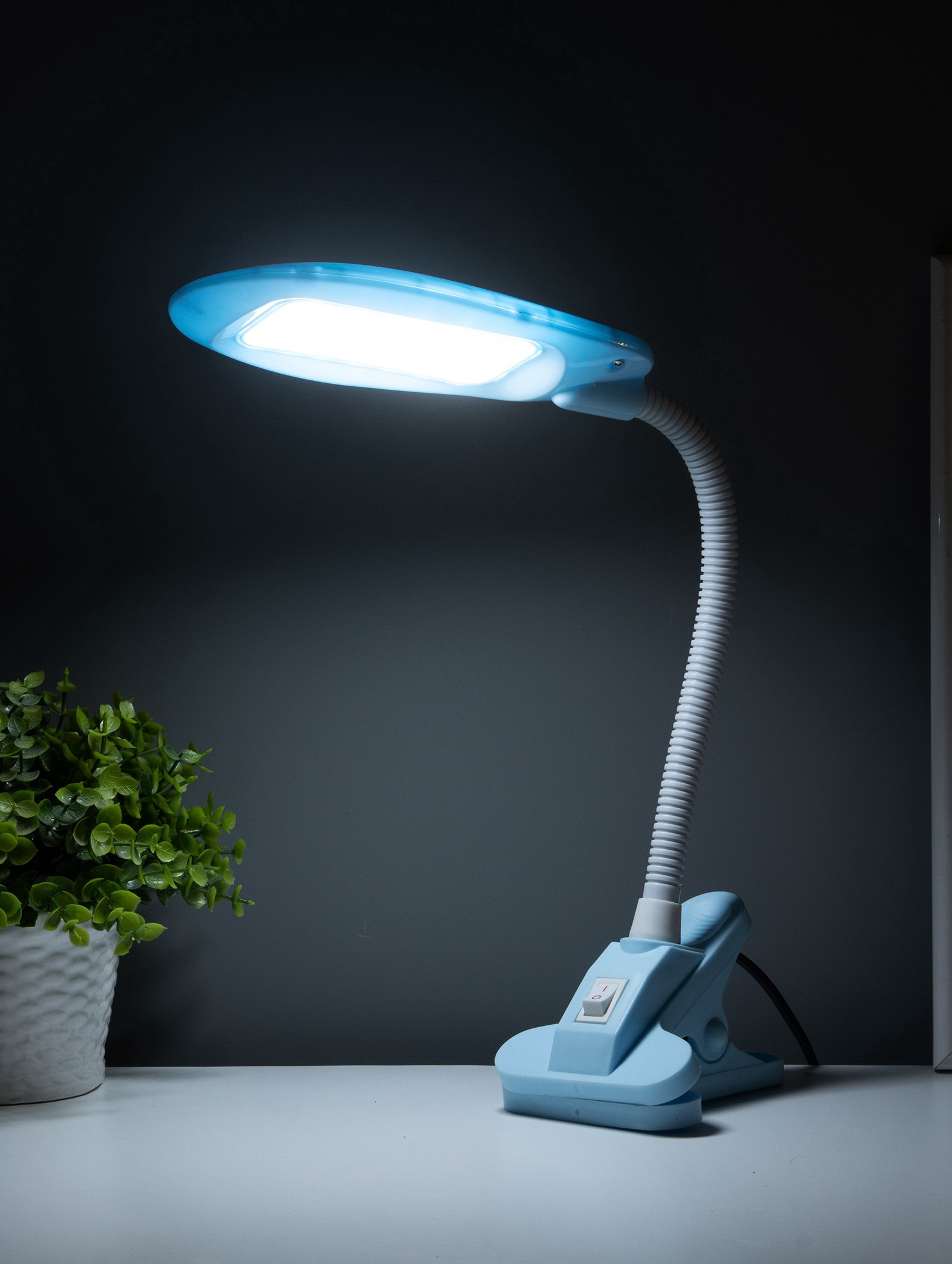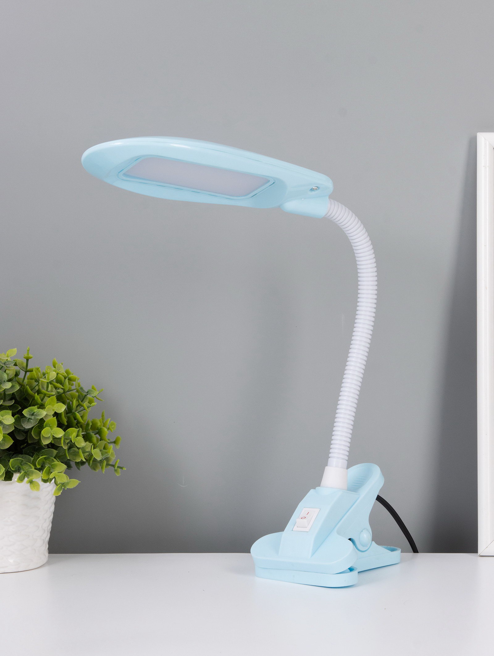 tnved: 9405204000 Гарантийный срок, мес.: 24 Материал основания: Пластик Вид лампы: Светодиодная Длина, см: 8.8 Цвет основания: Голубой Высота, см: 46.5 Тип рассеивателя: Без плафонов Направление рассеивателя: Поворотное Цоколь: Встроенные LED Цвет рассеивателя: Голубой Тип источника освещения: Встроенная LED Материал рассеивателя: Пластик Оттенок рассеивателя: Цветные Тип крепления: На прищепке Управление светильником: С выключателем на корпусе Тип питания: От сети 220 В Количество ламп: 1 Ширина, см: 11 Вид: Офисная/Школьная Лёгкий акцент уюта и функциональности компактная настольная лампа с гибкой конструкцией, которая идеально впишется в рабочее пространство школьника, студента или офисного сотрудника. Благодаря встроенным светодиодам она обеспечивает мягкое и равномерное освещение без мерцания, снижая нагрузку на глаза при длительной работе или чтении. Практичность конструкции продумана до мелочей: надёжное крепление на прищепке экономит место на столе, а поворотный механизм позволяет точно направить световой поток в нужную зону. Лёгкий пластиковый корпус в приятном голубом цвете добавляет свежести интерьеру и делает устройство удобным для повседневного использования. | ||