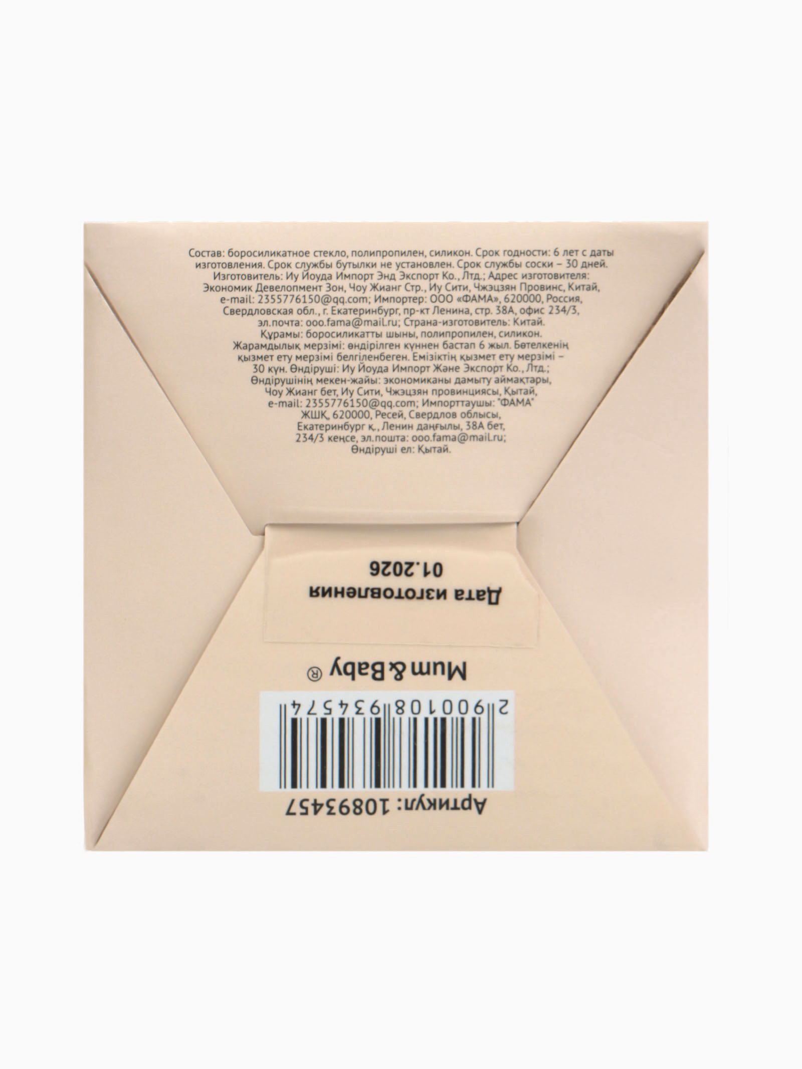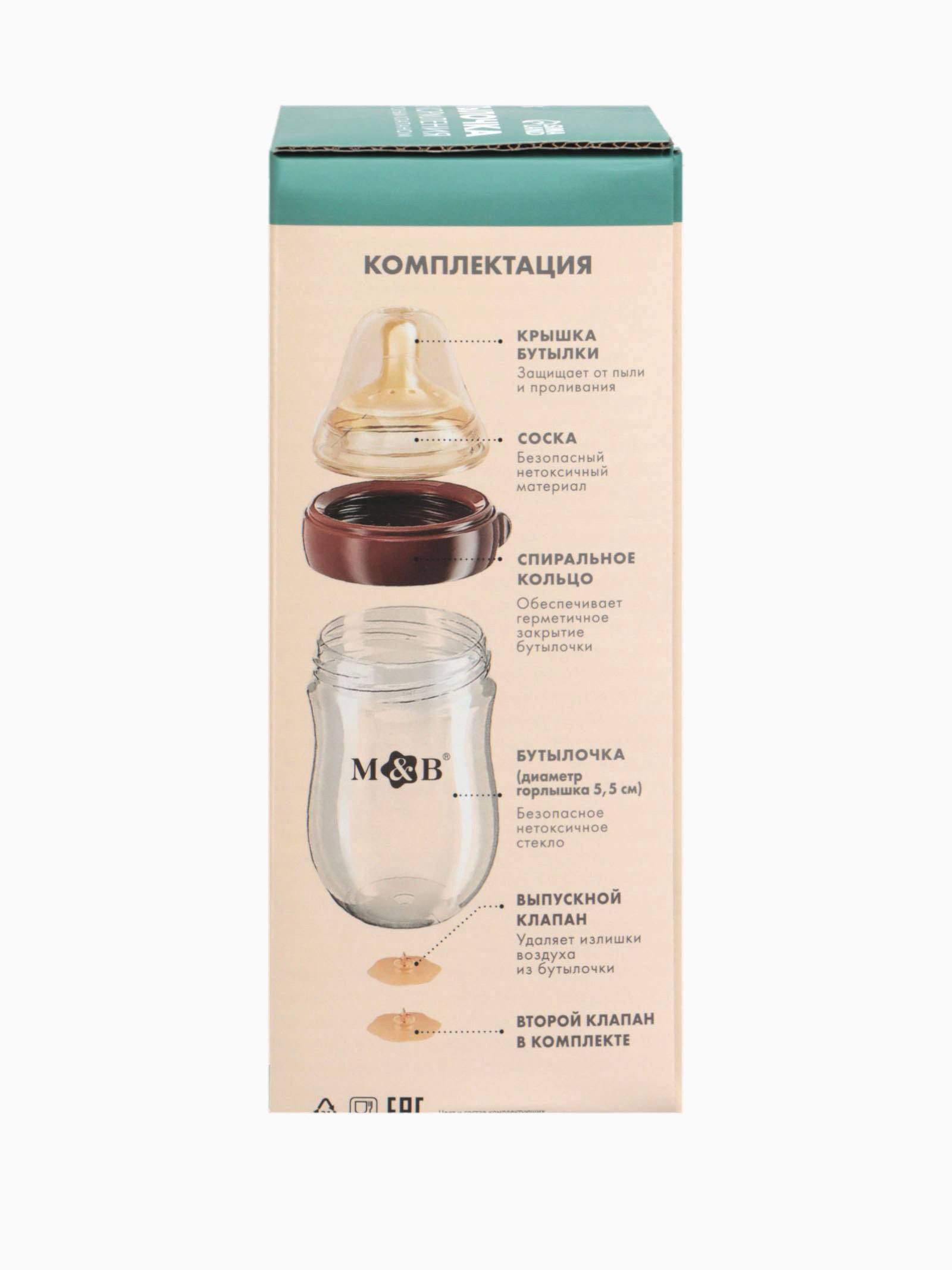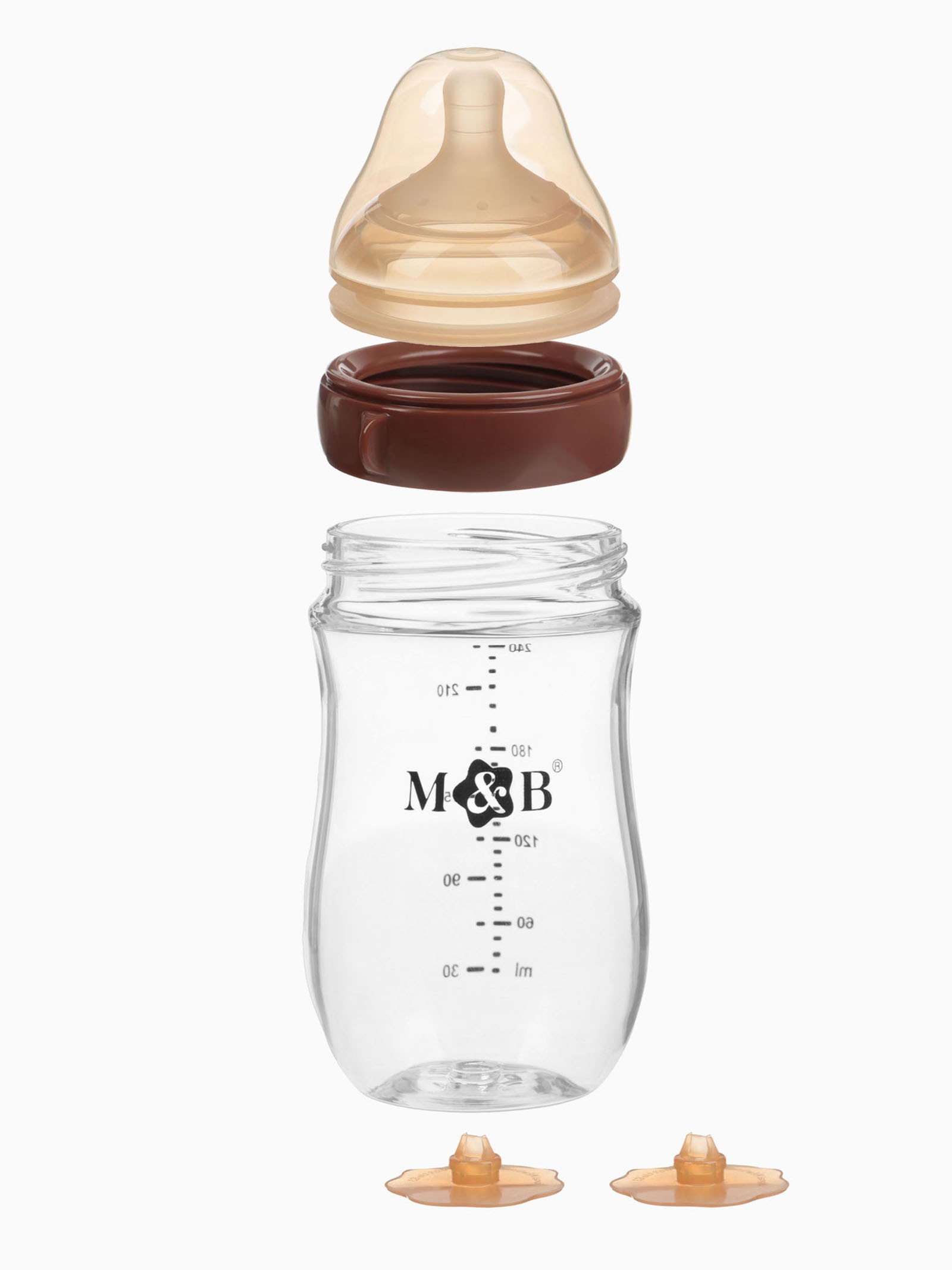 Бутылочка для кормления, антиколиковая, боросиликатное стекло, 240 мл M&B, 7x7x17.1 см., Mum&Baby, Китай