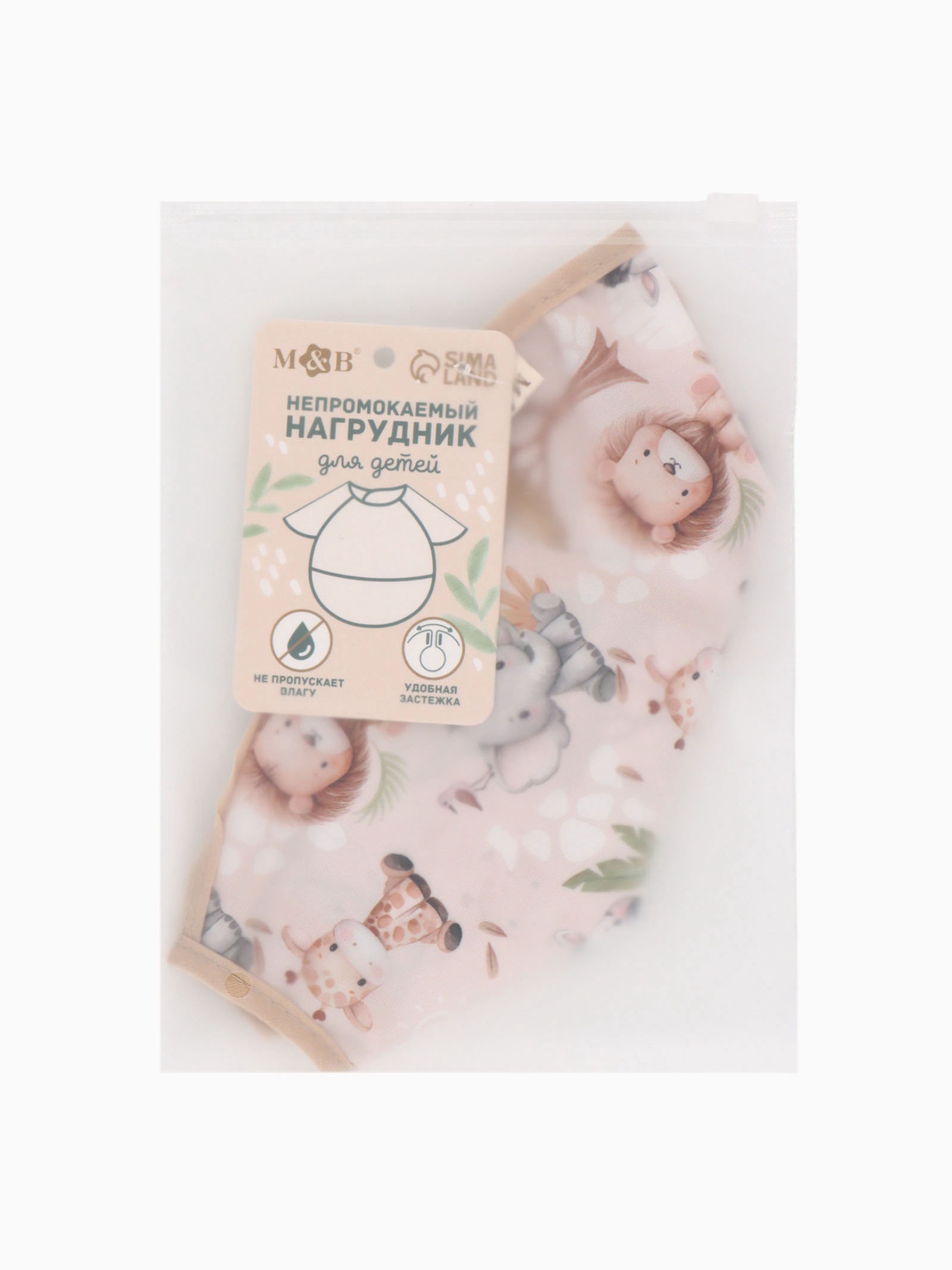 Нагрудник для кормления непромокаемый с карманом "Саванна", M&B, 30x24x0.5 см., Mum&Baby, Китай