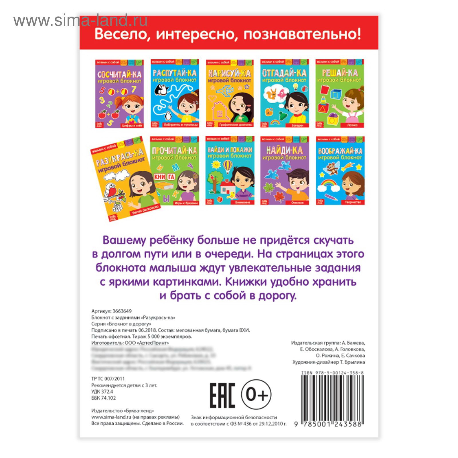 Блокнот с заданиями "Раскрась-ка", 20 стр., 17.5x12x0.3 см., БУКВА-ЛЕНД, Россия