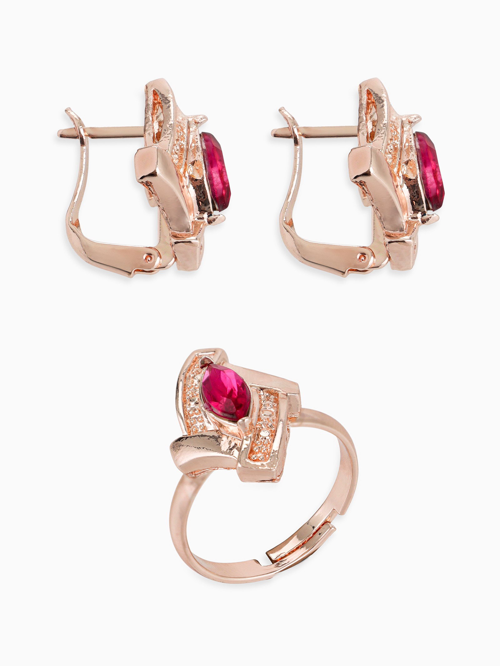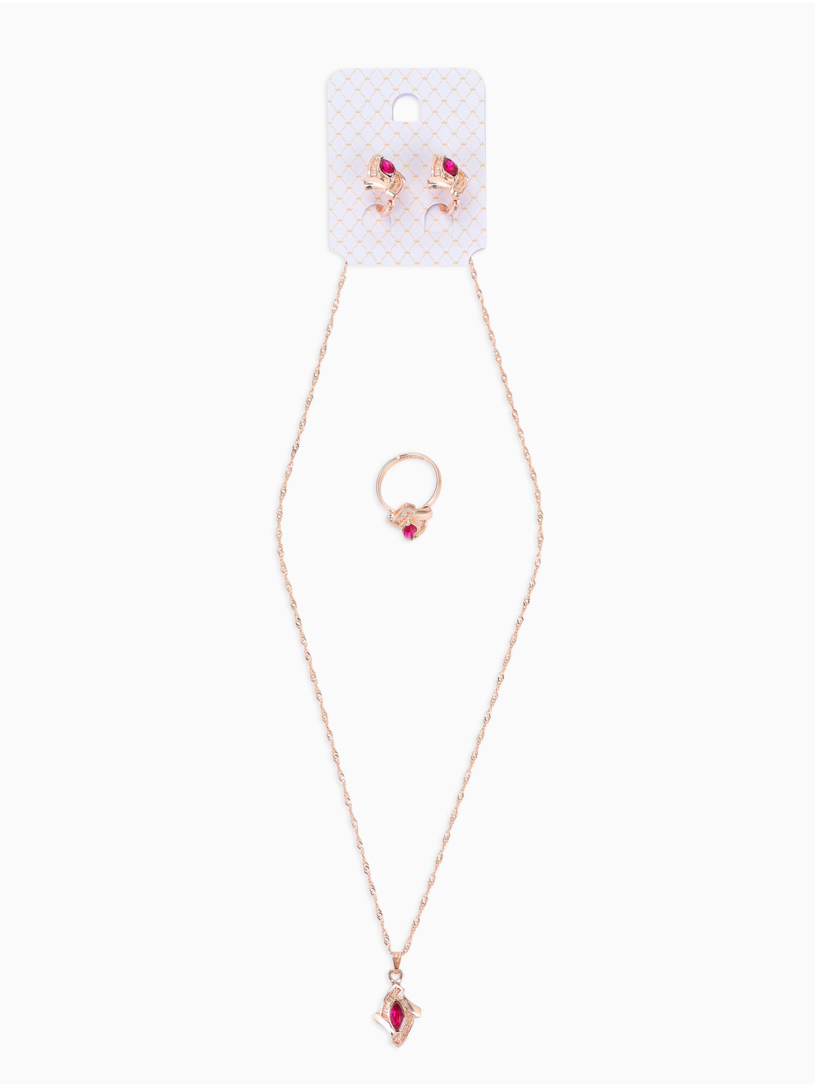 Гарнитур 3 предмета: серьги, кулон, кольцо "Эдель" ромб совершенство, цвет розовый в золоте, 45 см, 2.5x45x45 см., QF, Китай