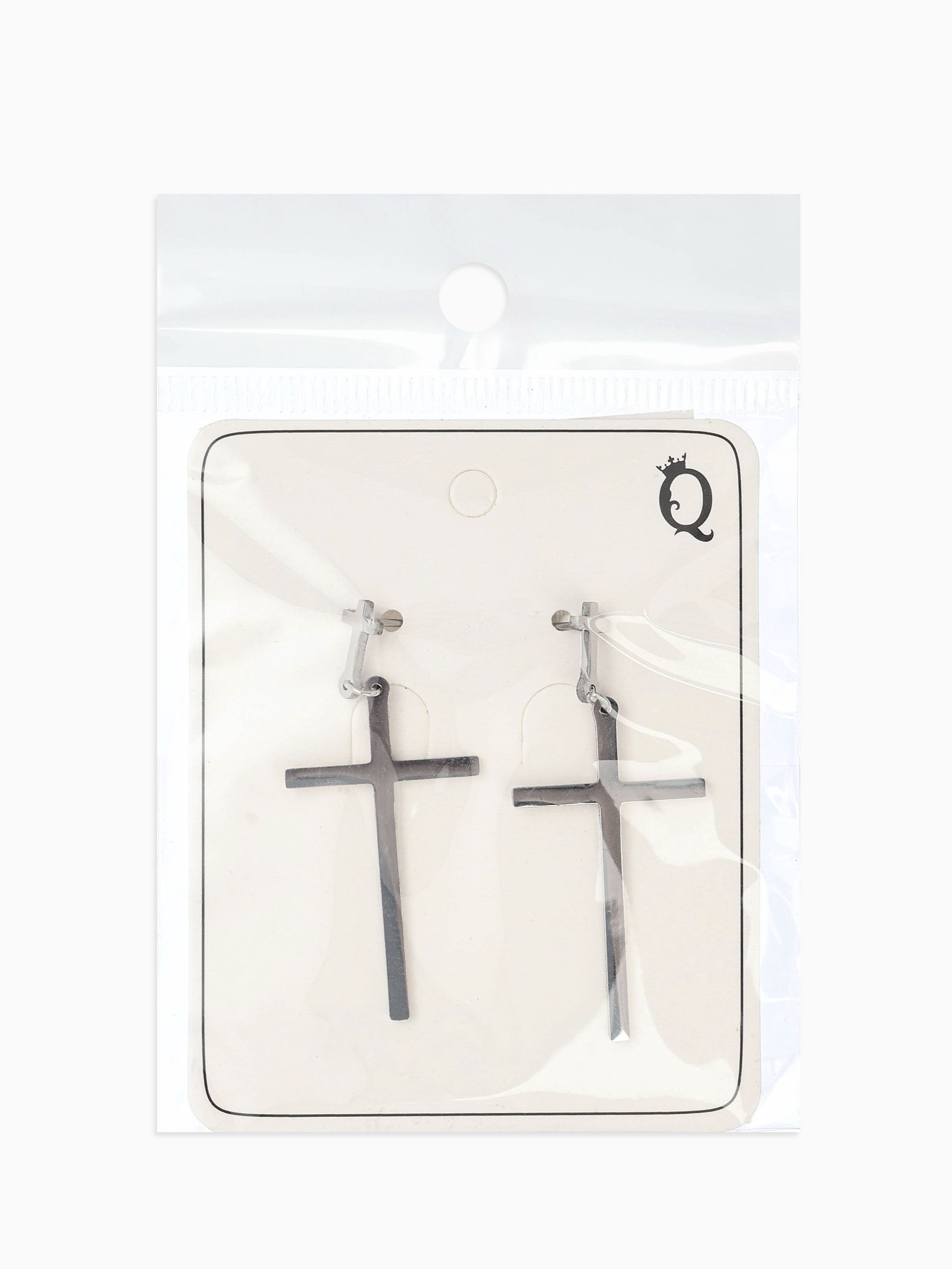 Серьги металл "Крестики", дуэт, цвет серебро, 2x5x1 см., QF, Китай
