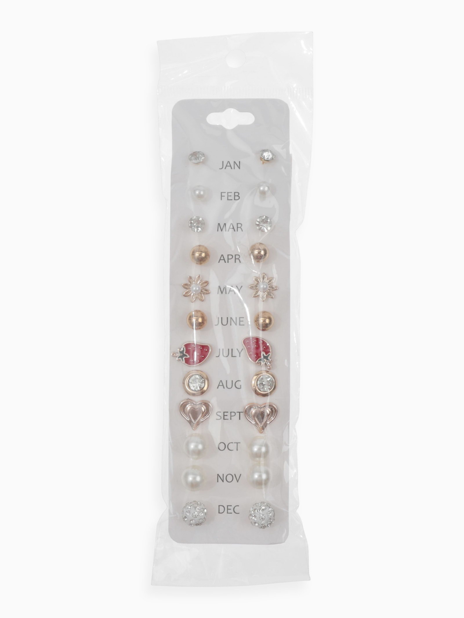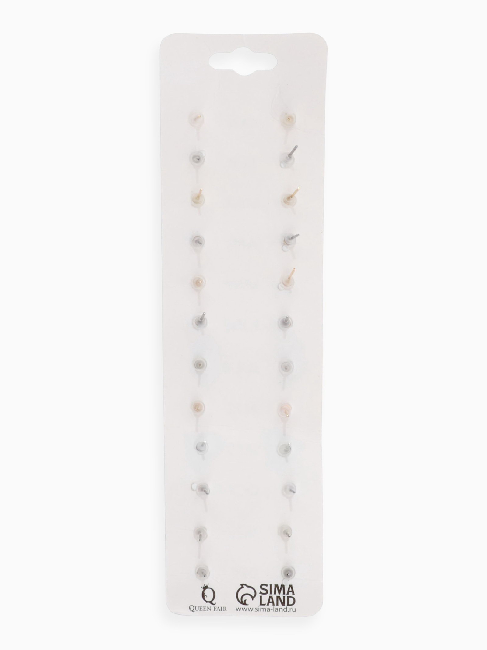 Серьги пусеты One year, 12 пар беззаботность, бело-красные в золоте, 1.2x1.2x1 см., QF, Китай