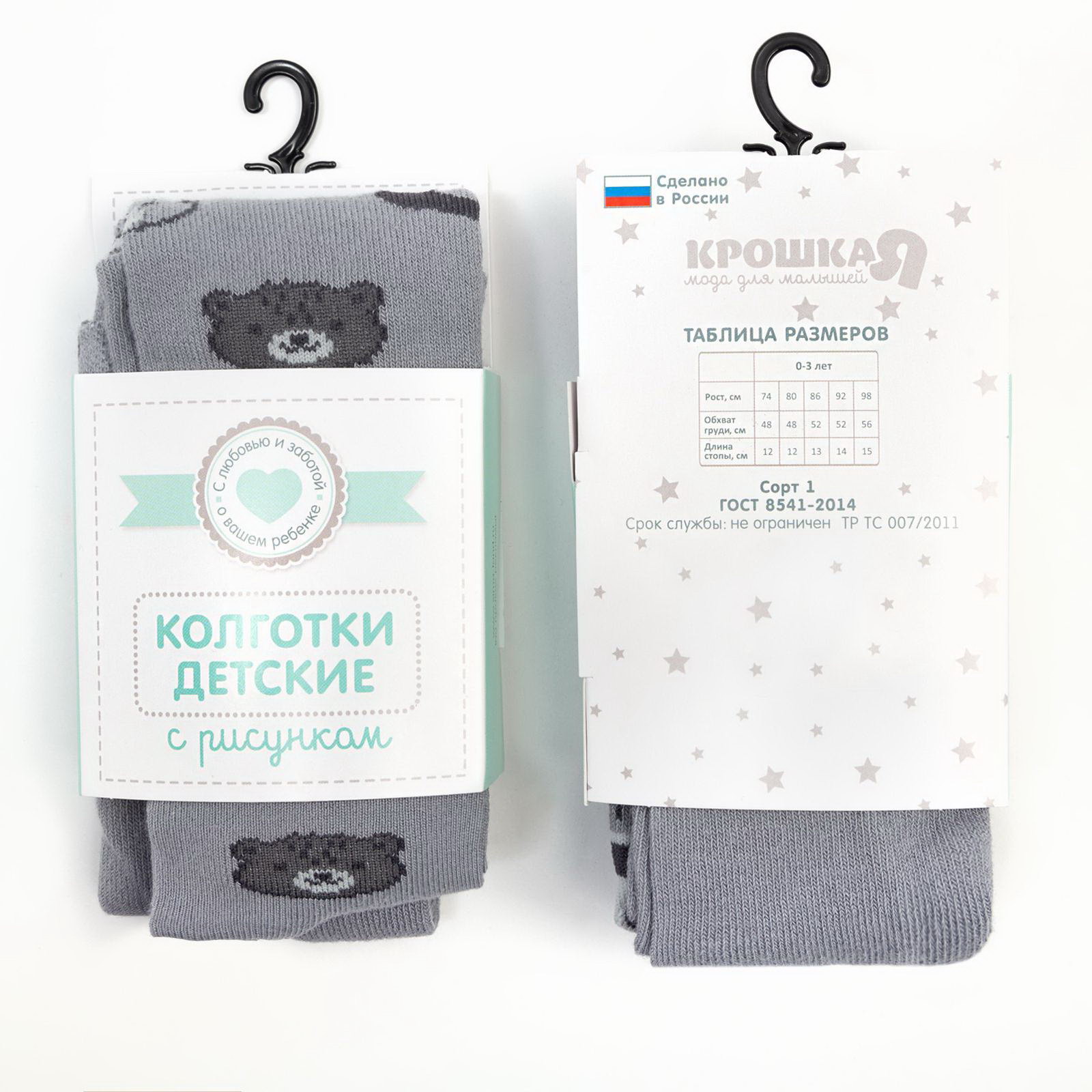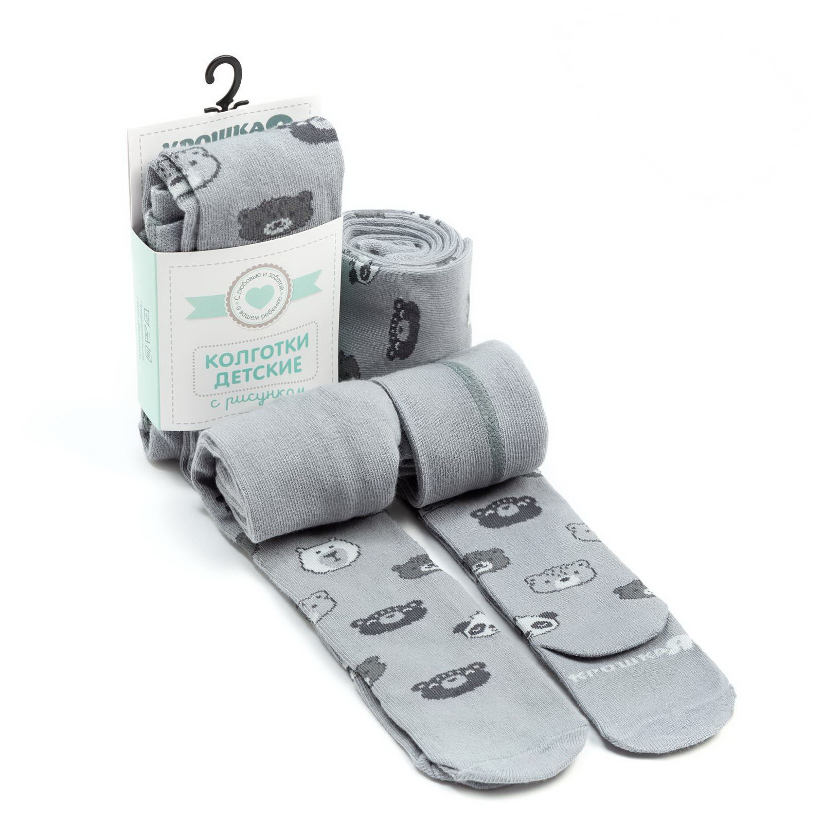 Колготки "Мишка", серый, рост 86-92 см, Крошка Я, Россия