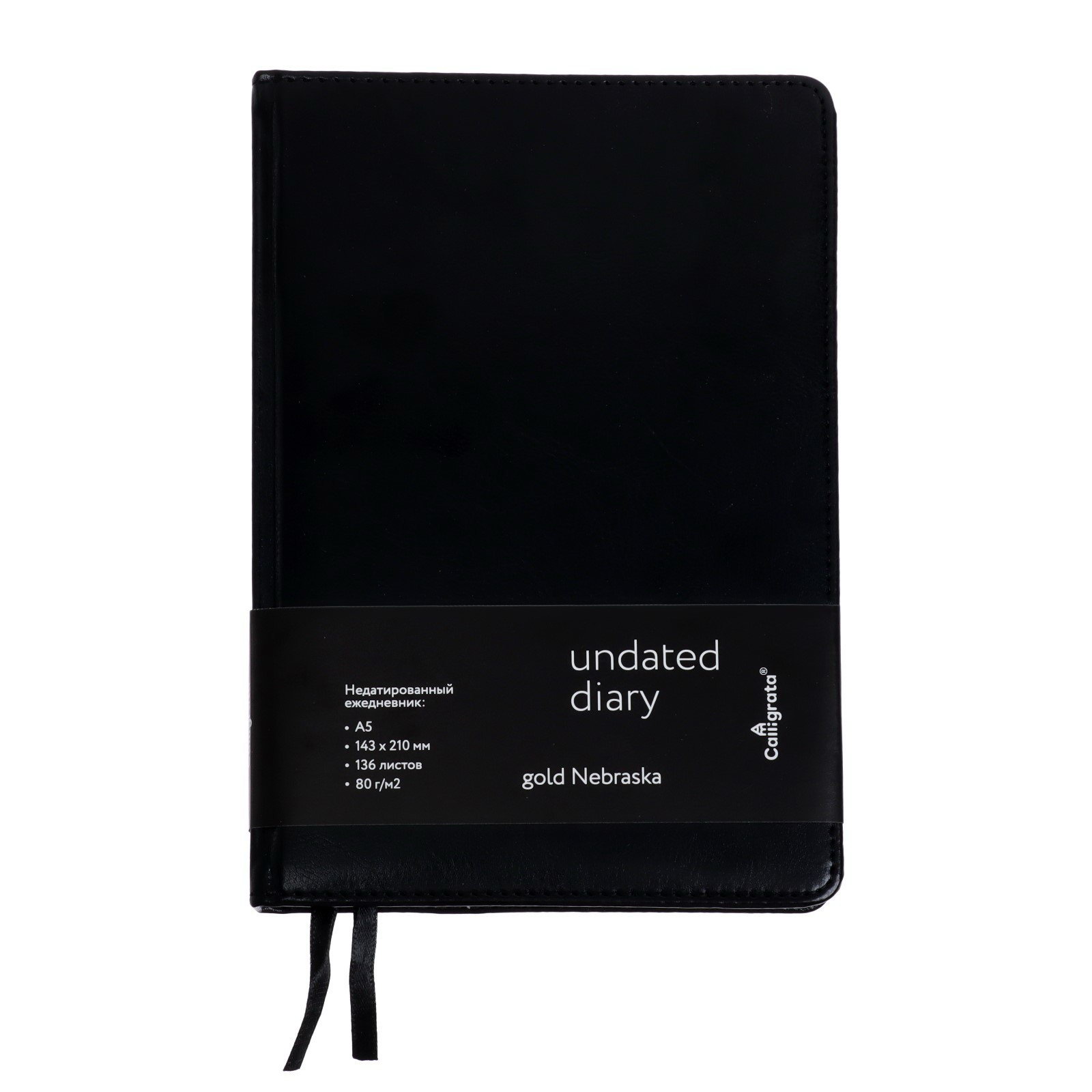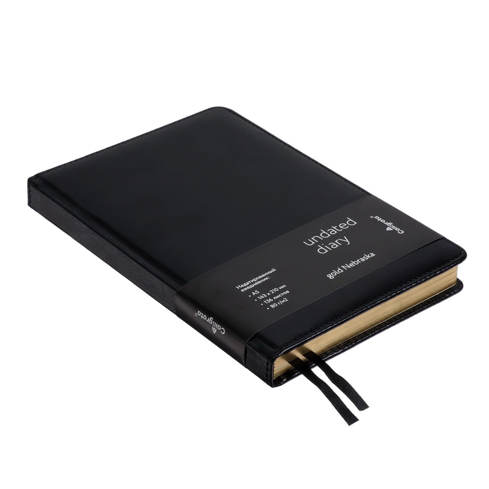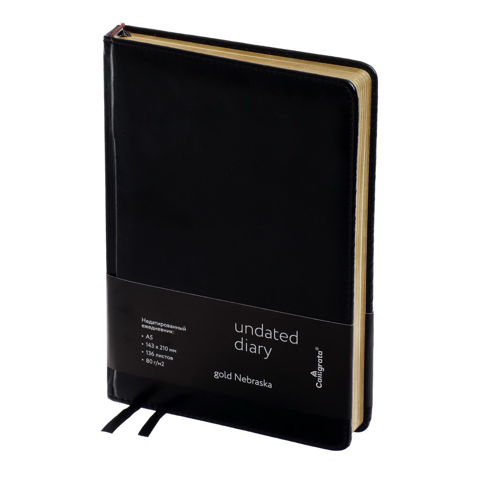 Ежедневник НЕдатированный А5, 136 листов в линейку, кожзам "Небраска", золотой срез, чёрный, Calligrata, Китай