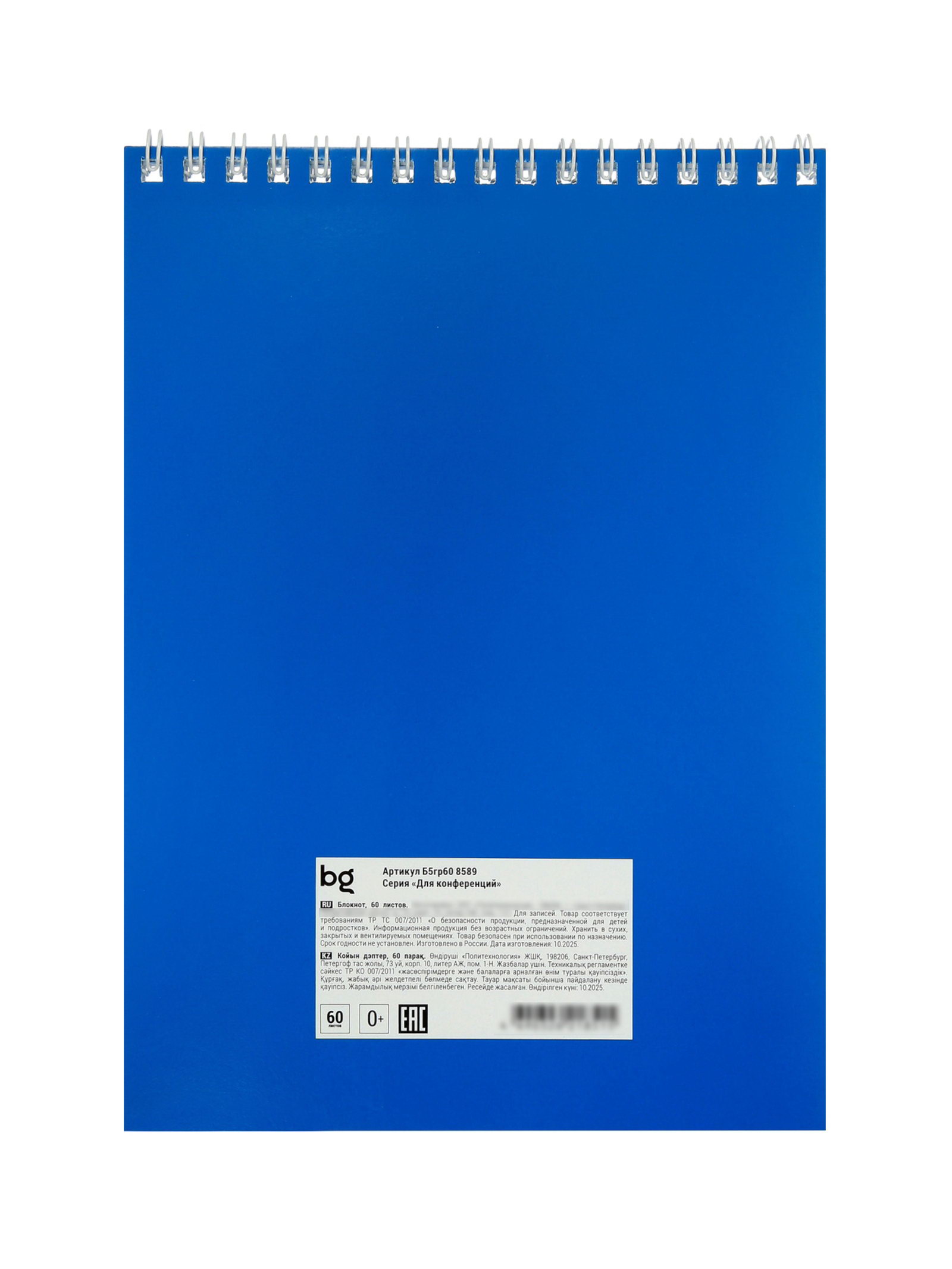 Блокнот А5 60л кл на гребне Для конференций, обл мел карт, СИНИЙ, BG, Россия