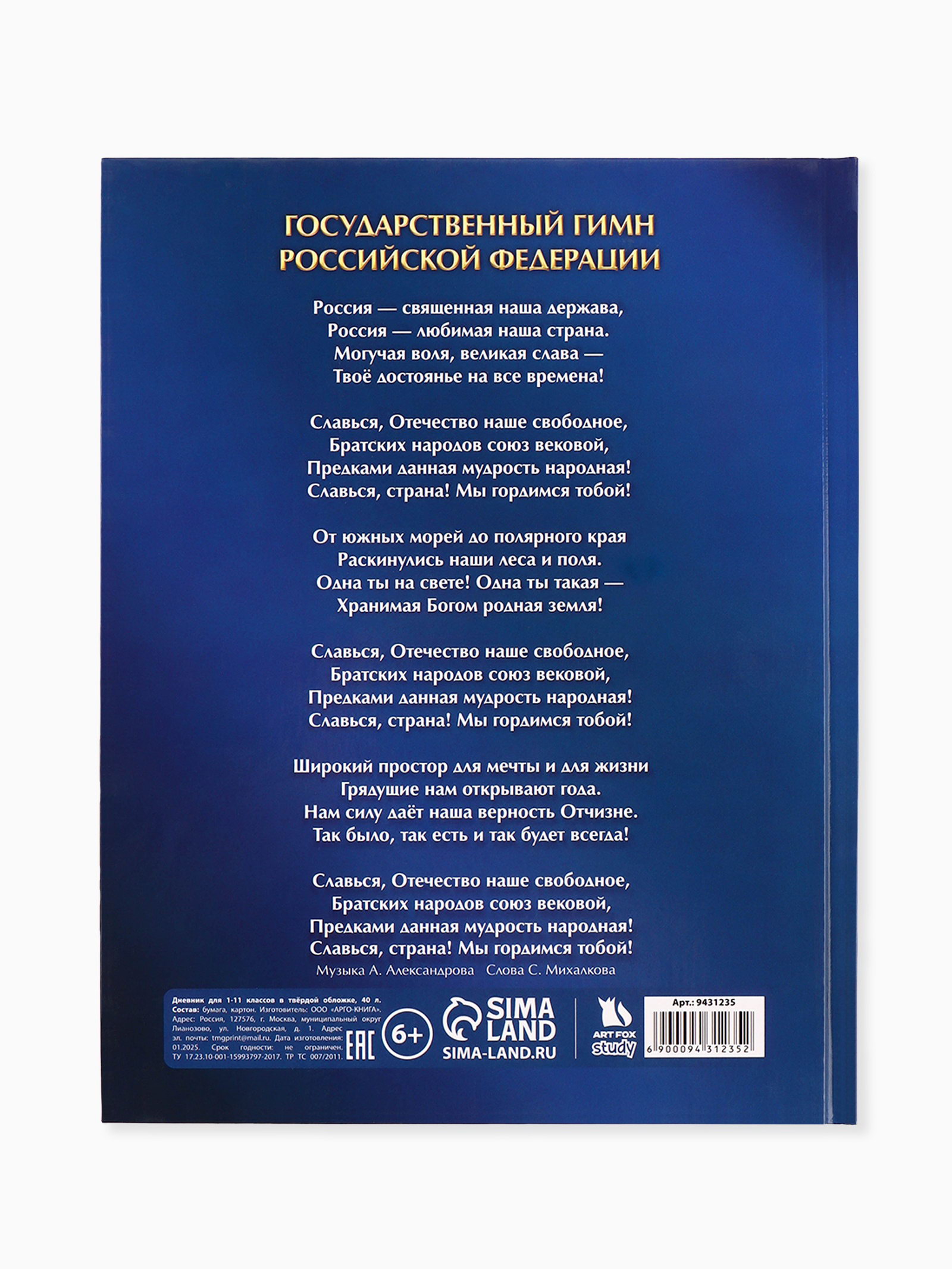 Дневник школьный 1-11 класс, универсальный, 40 л "Россия", ArtFox STUDY, Россия