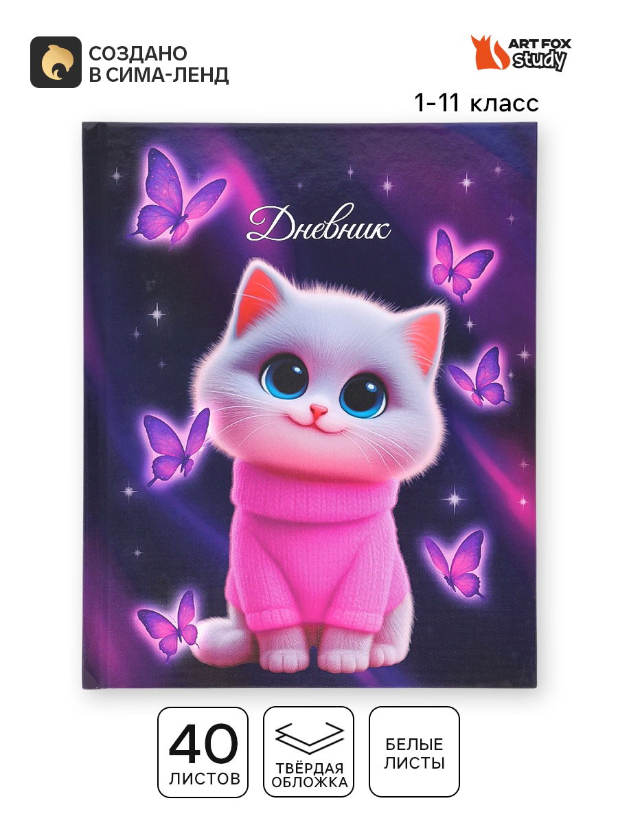 Дневник школьный 1-11 класс, универсальный, 40 л "Котик милашка", ArtFox STUDY, Россия