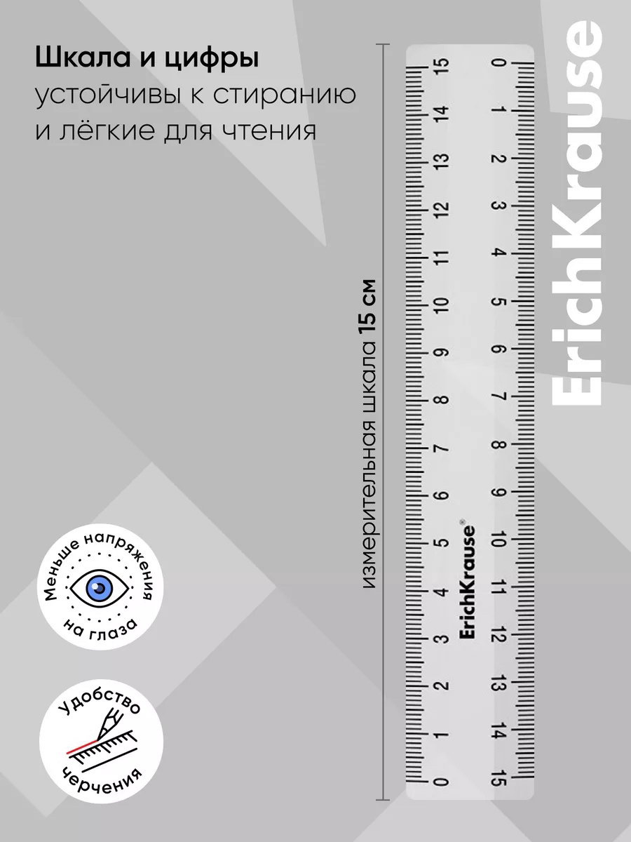 Линейка 15 см Clear, прозрачная, 2x16x2.7 см., ErichKrause, Россия