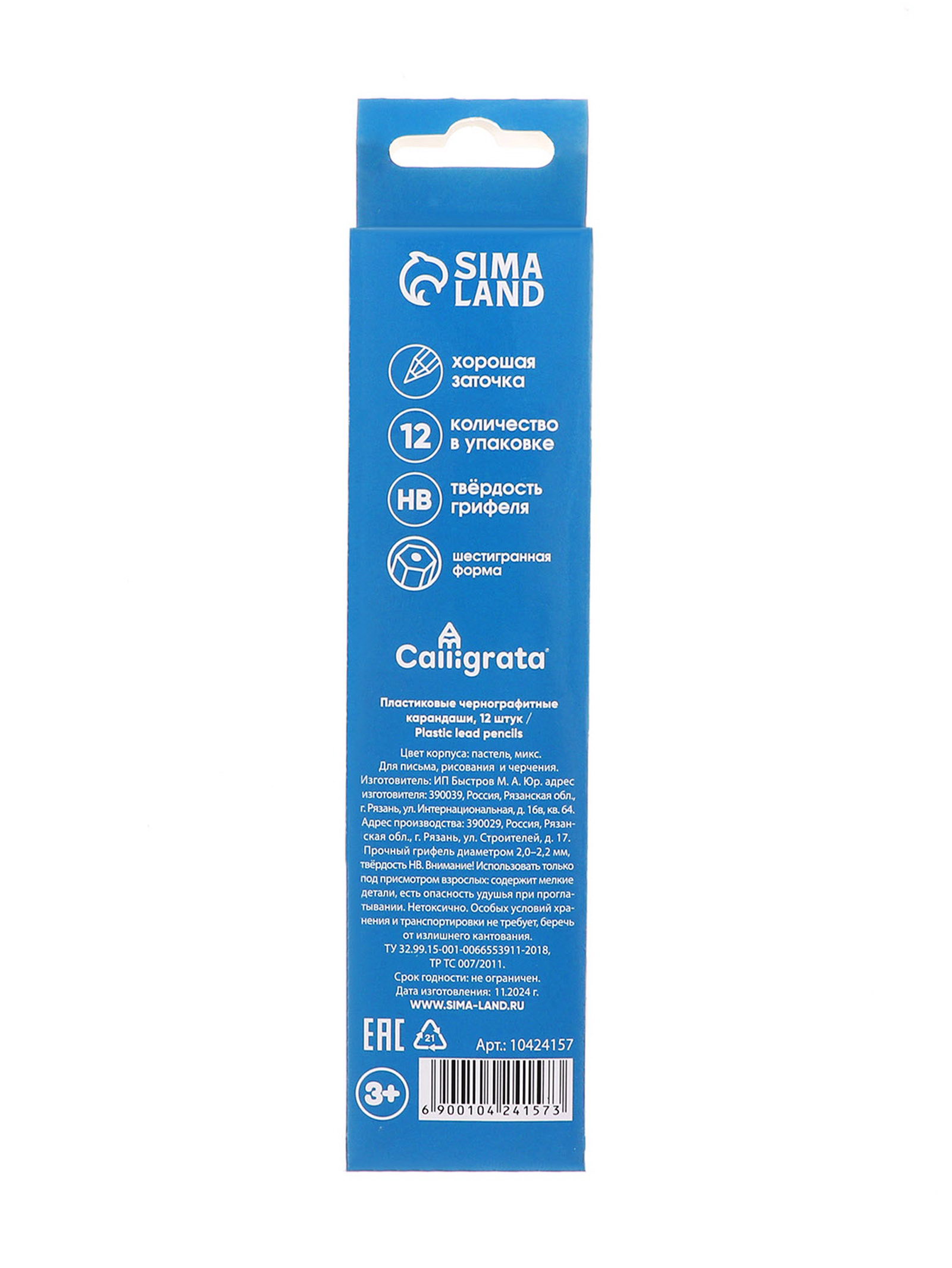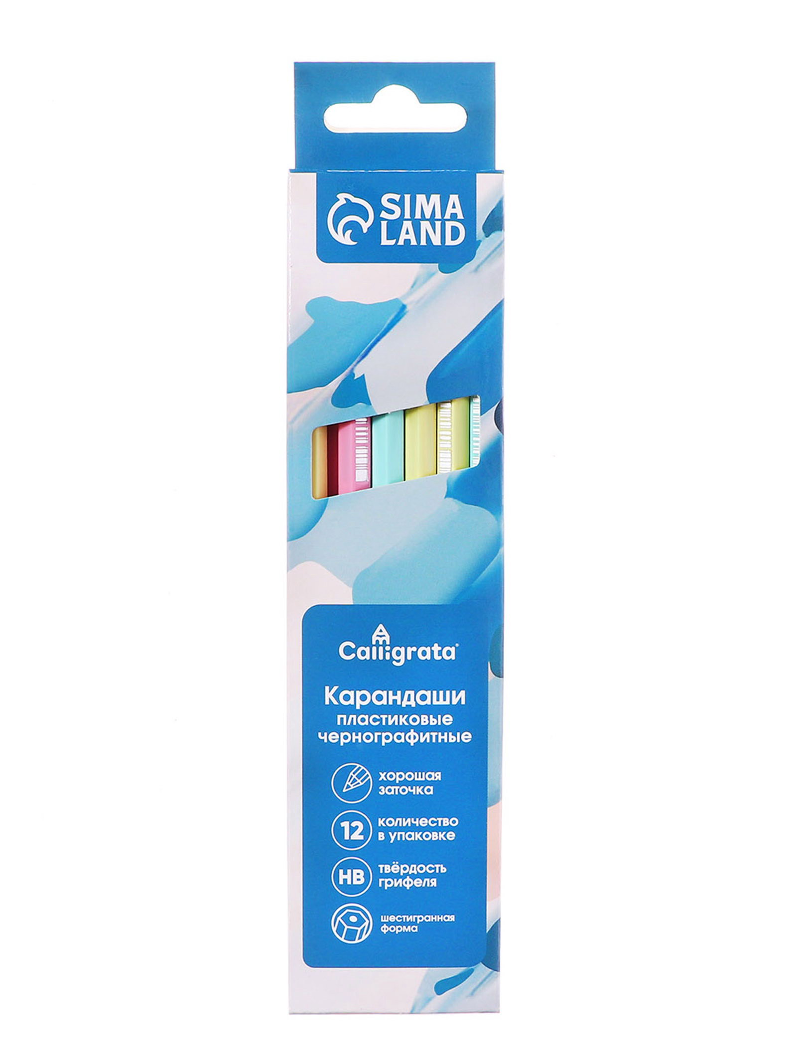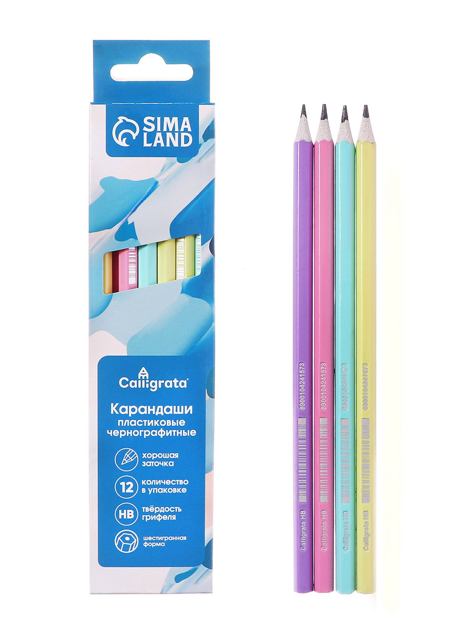 Карандаш чернографитный, Pastel, HB, заточенный, пластик, шестигранный, МИКС, 0.7x17x0.7 см., Calligrata, Россия