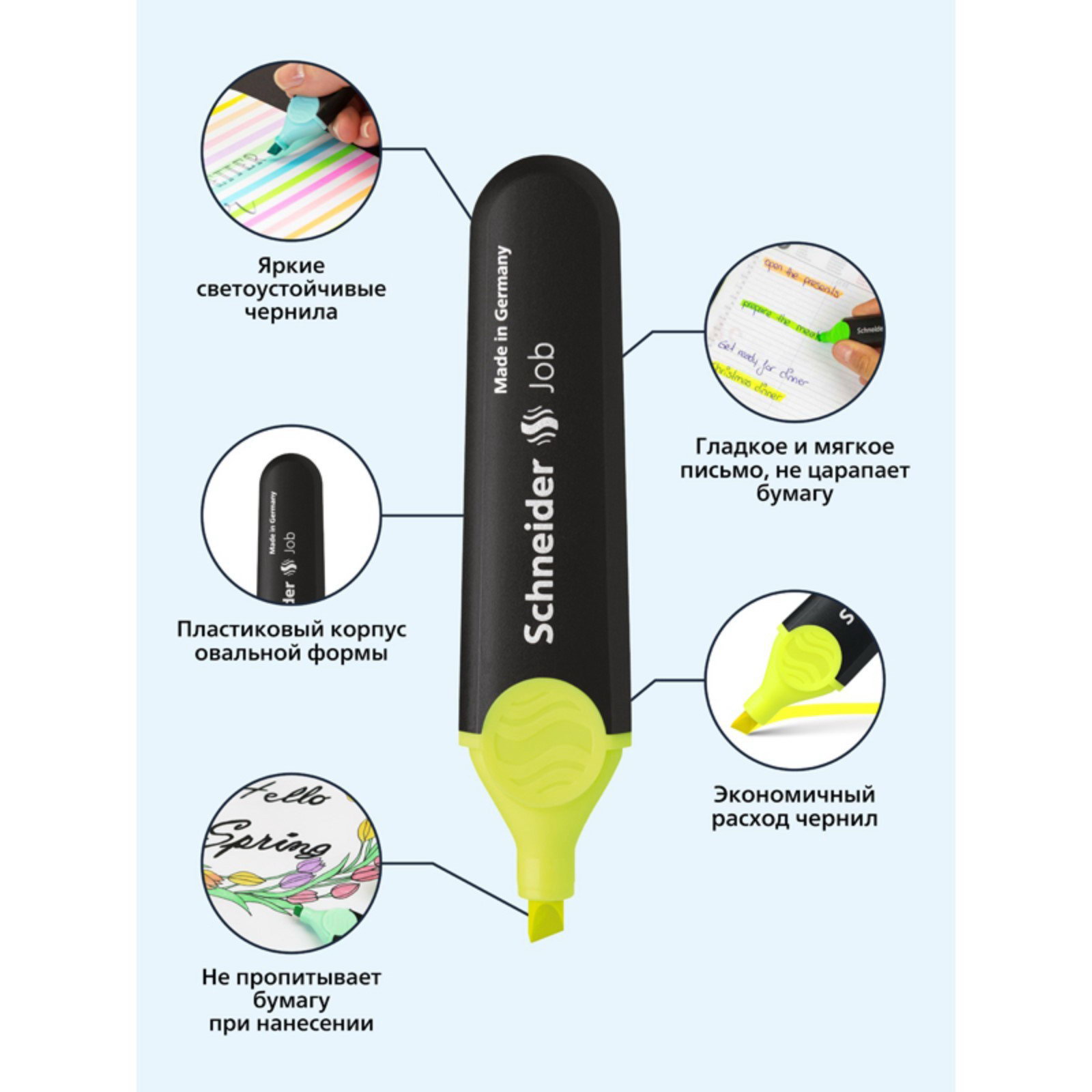 Маркер текстовыделитель Job, 1.0-5.0 мм, чернила на водной основе, желтый неон, Schneider, Германия