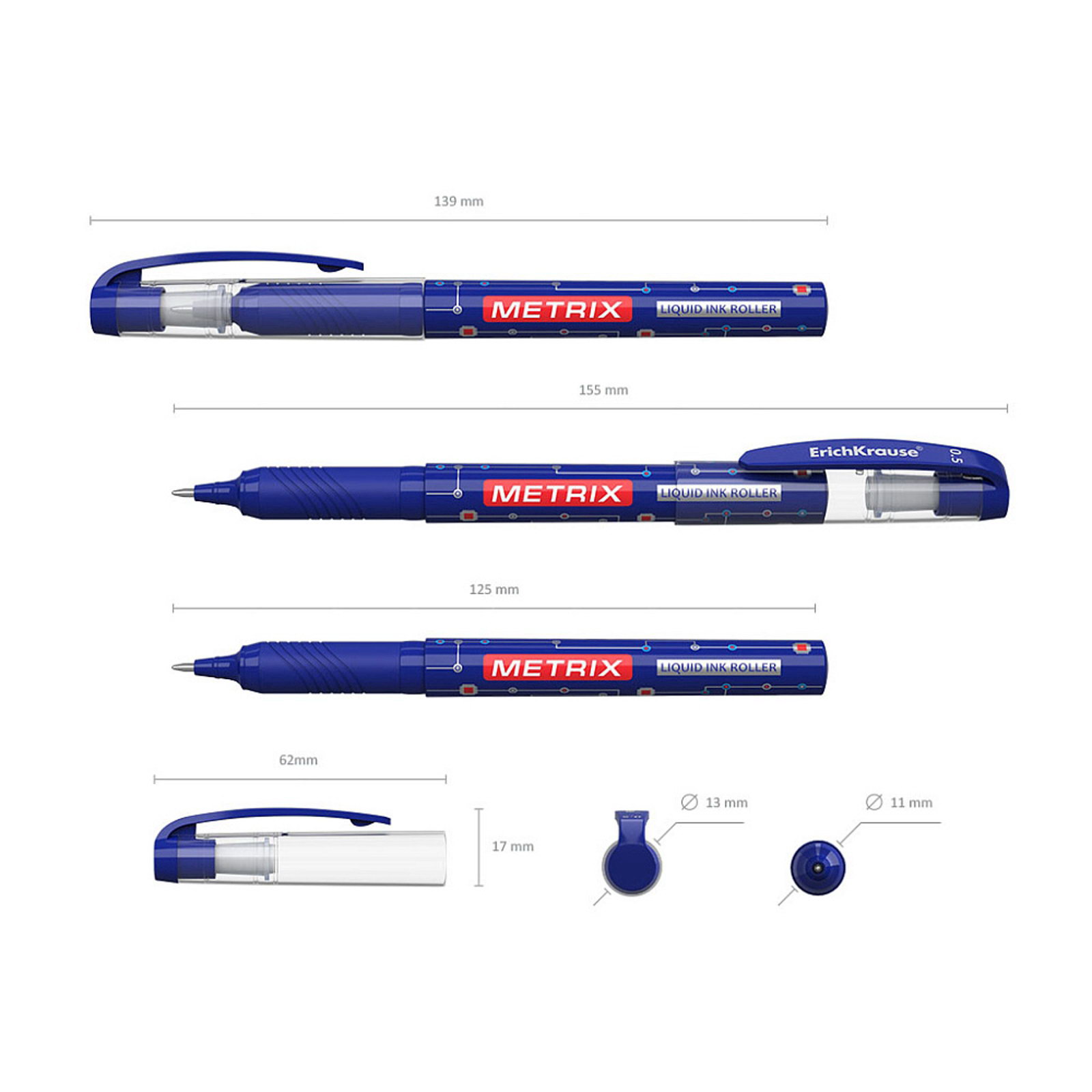 Ручка - роллер Erich Krause METRIX, узел 0.5, чернила синие, длина письма 1200 метров, ErichKrause, Китай