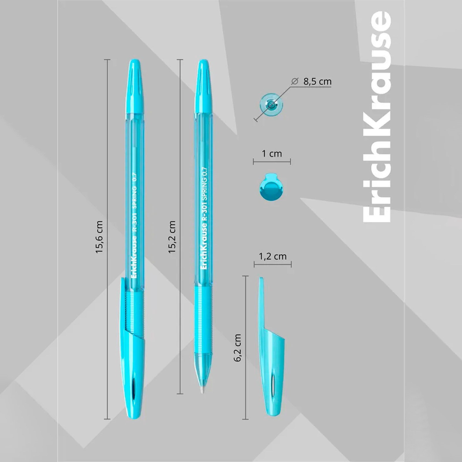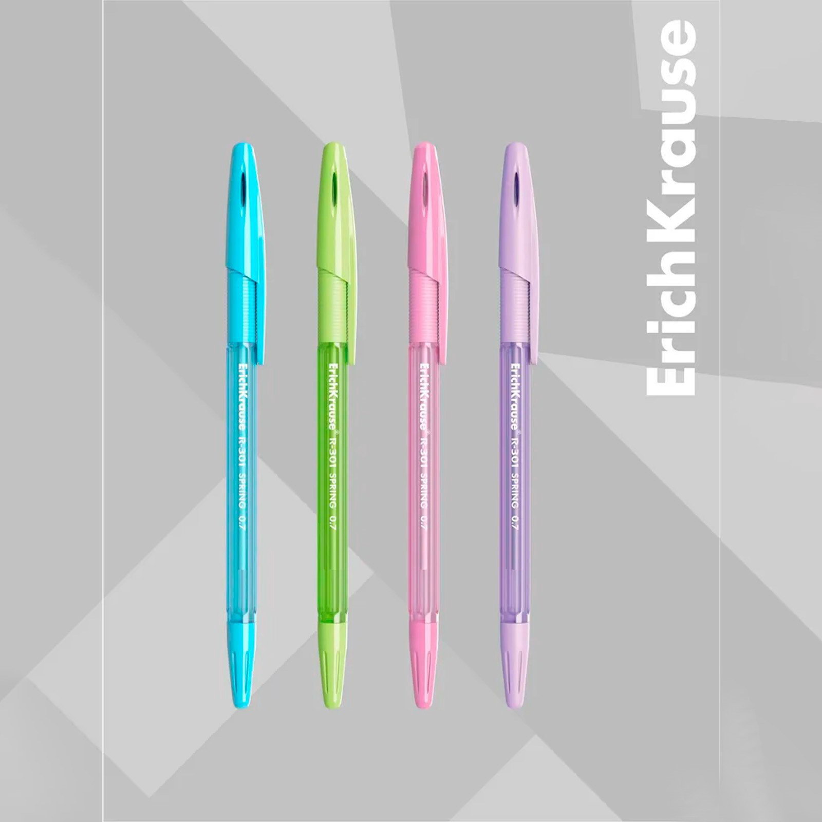 Набор ручек шариковых 4 штуки R-301 Spring Stick & Grip, узел 0.7 мм, чернила синие, резиновый упор, длина линии письма 1000 метров, европодвес, ErichKrause, Китай