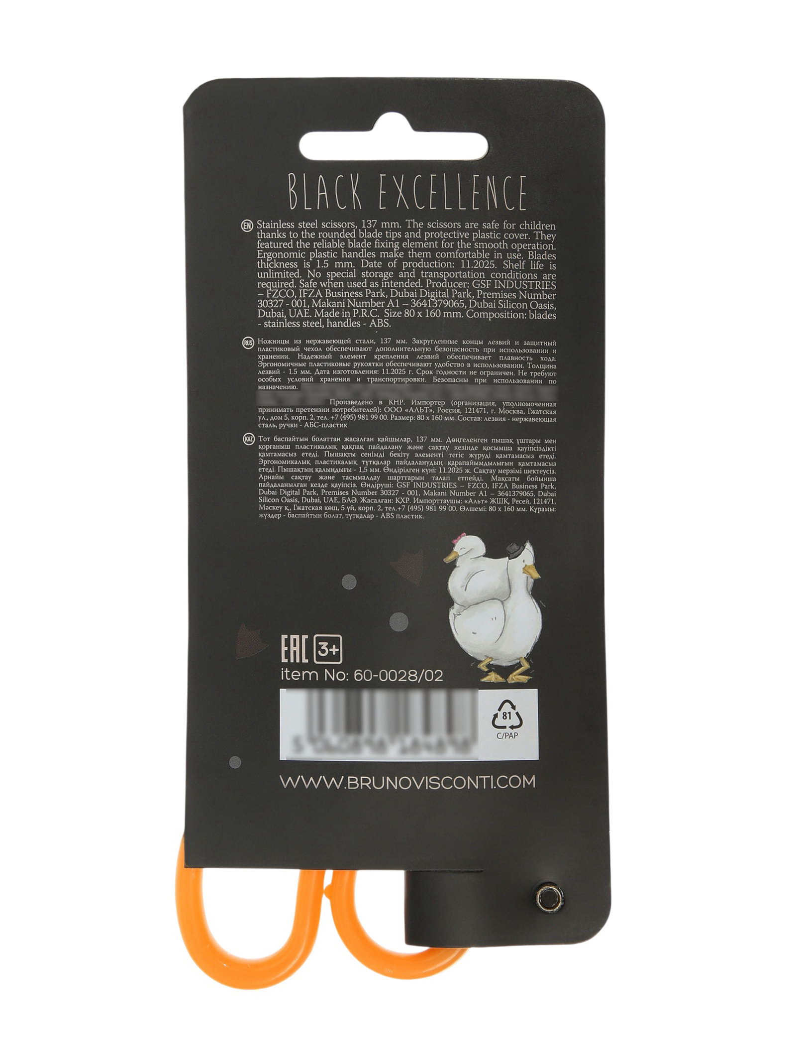 Ножницы детские "Гуси", с защитным чехлом, 13.7 см, BrunoVisconti, Китай