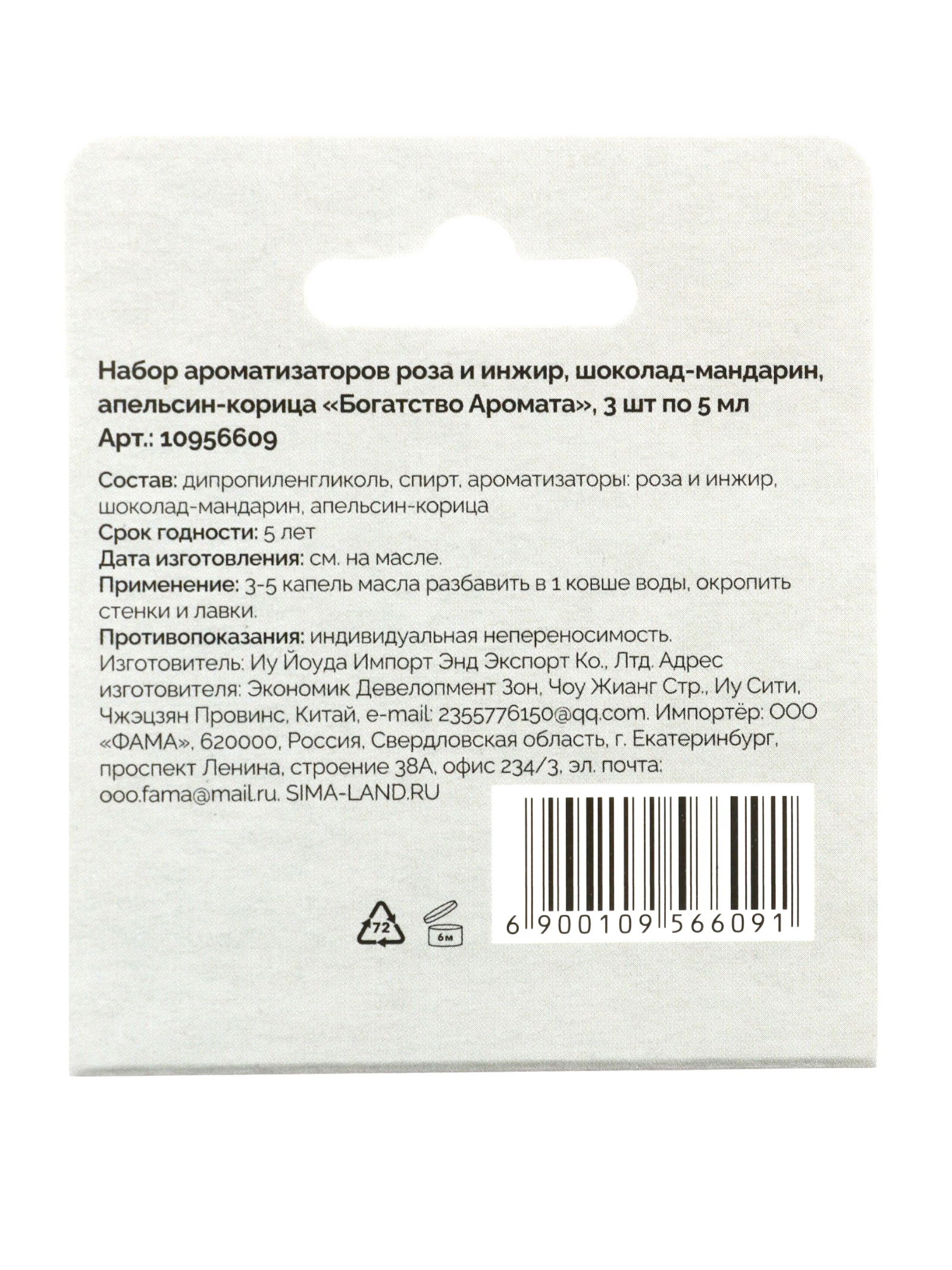 Набор эфирных масел роза-инжир, шоколад-мандарин, апельсин-корица 3 шт. по 5 мл, Богатство Аромата, Китай