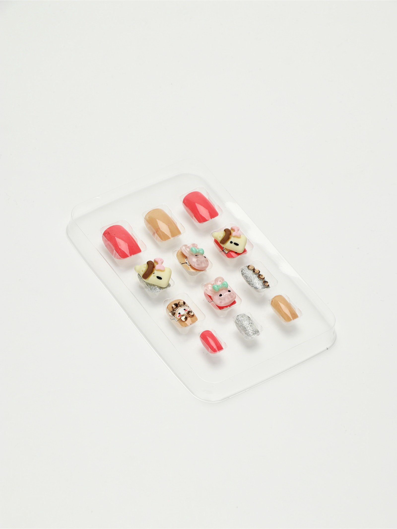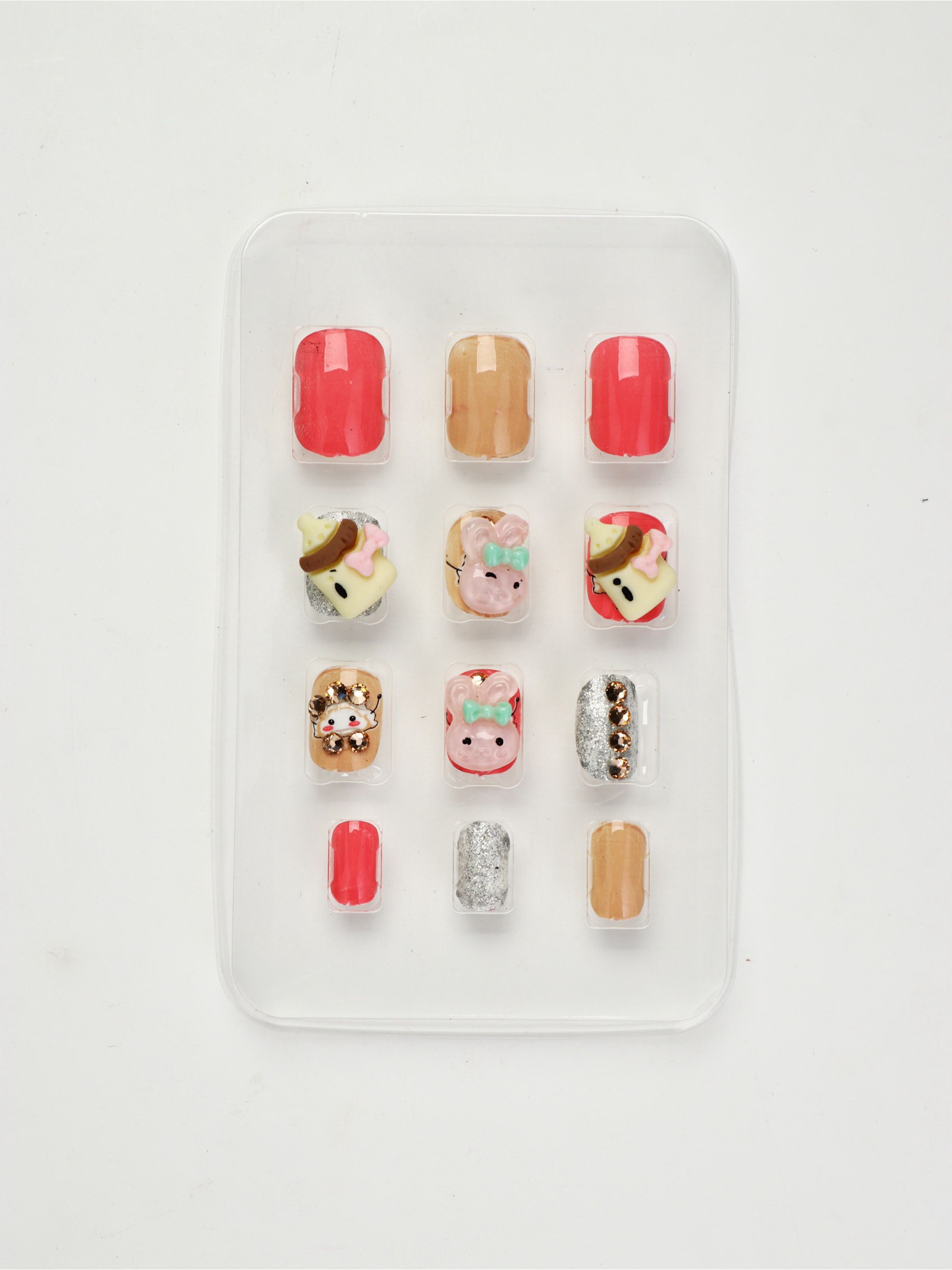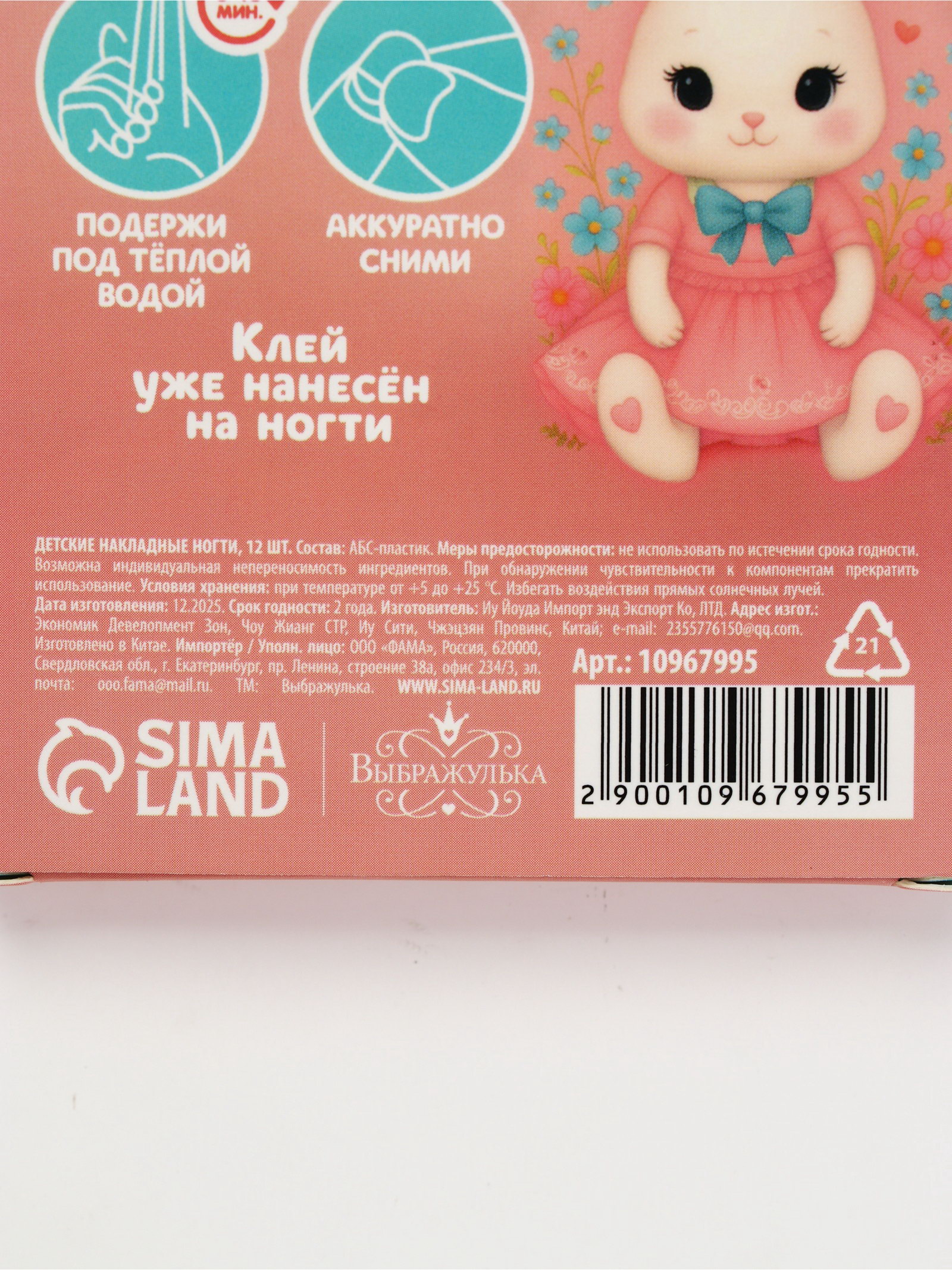 Детские накладные ногти "Плюшевый зайка", 12 шт., 7.3x15.4x1.2 см., Выбражулька, Китай