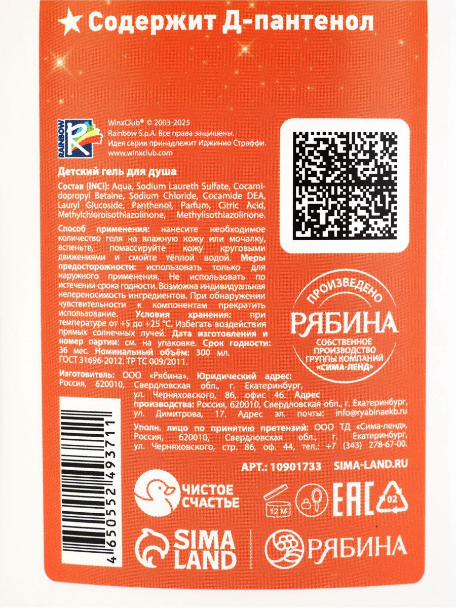 Детский гель для купания, аромат: вишневый коктейль, 300 мл, Винкс, 300 мл., Чистое счастье, Россия