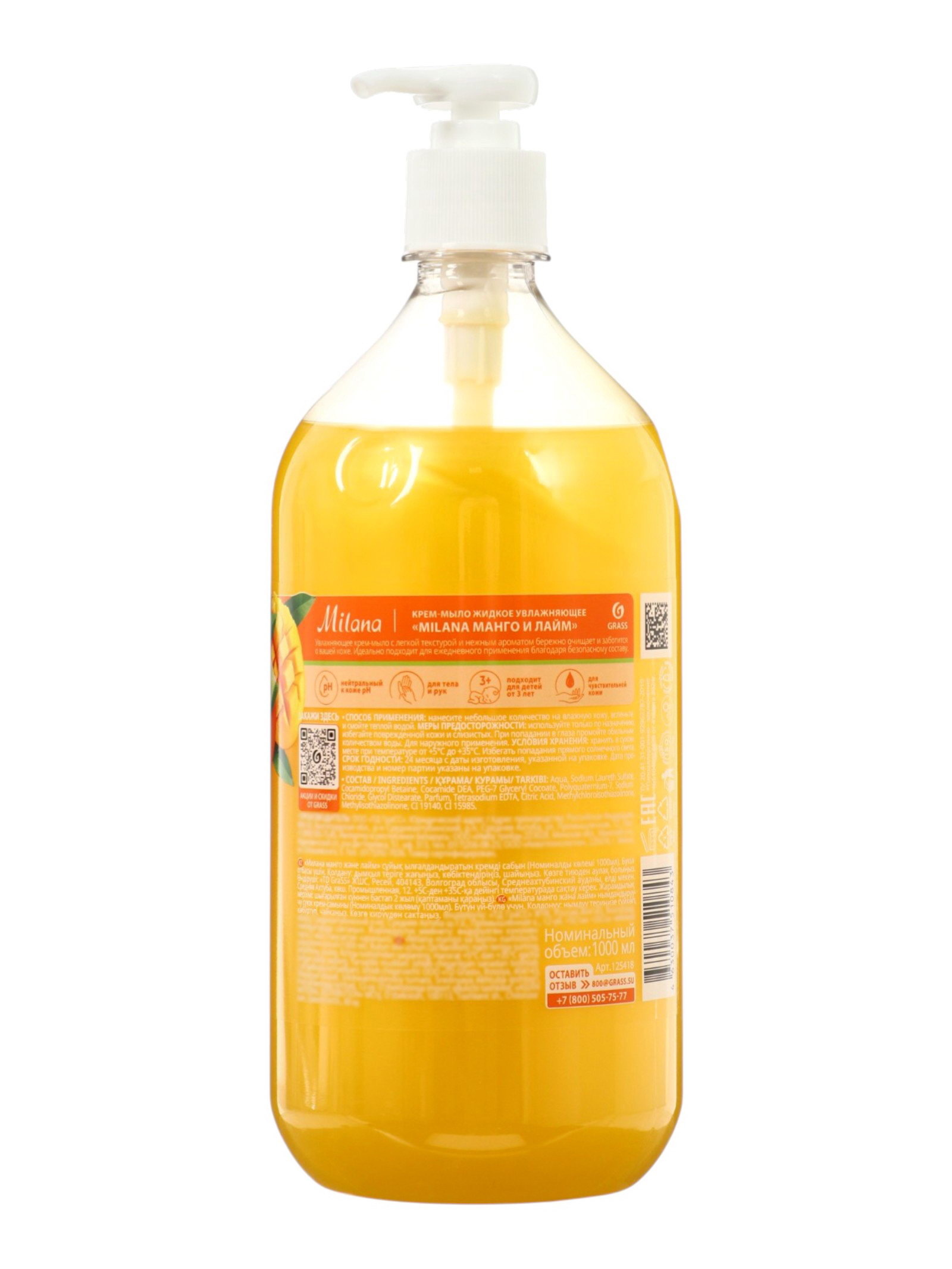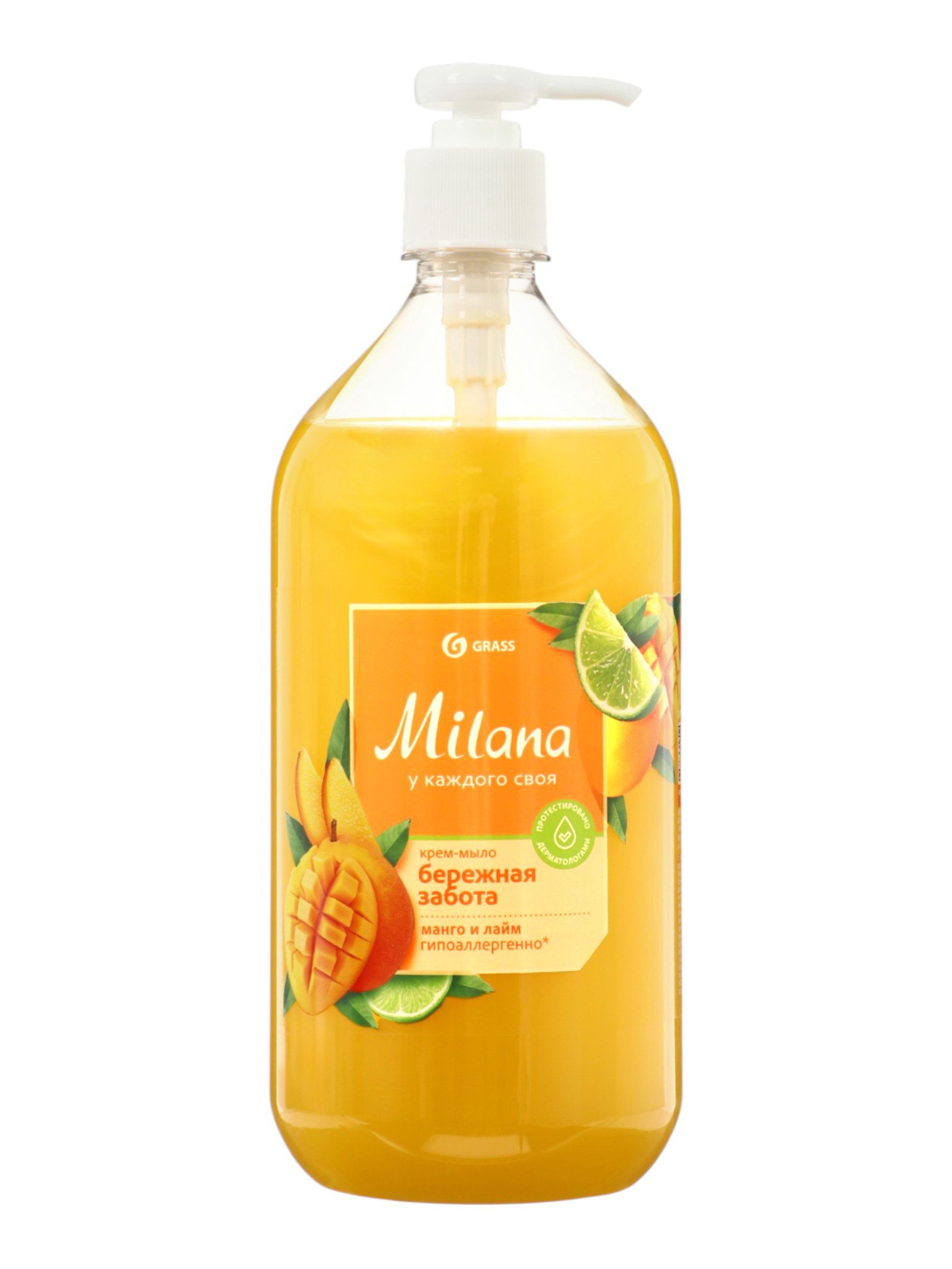 Жидкое крем-мыло Milana "Манго и лайм", 1 л, 9x24.5x9 см., GRASS, Россия