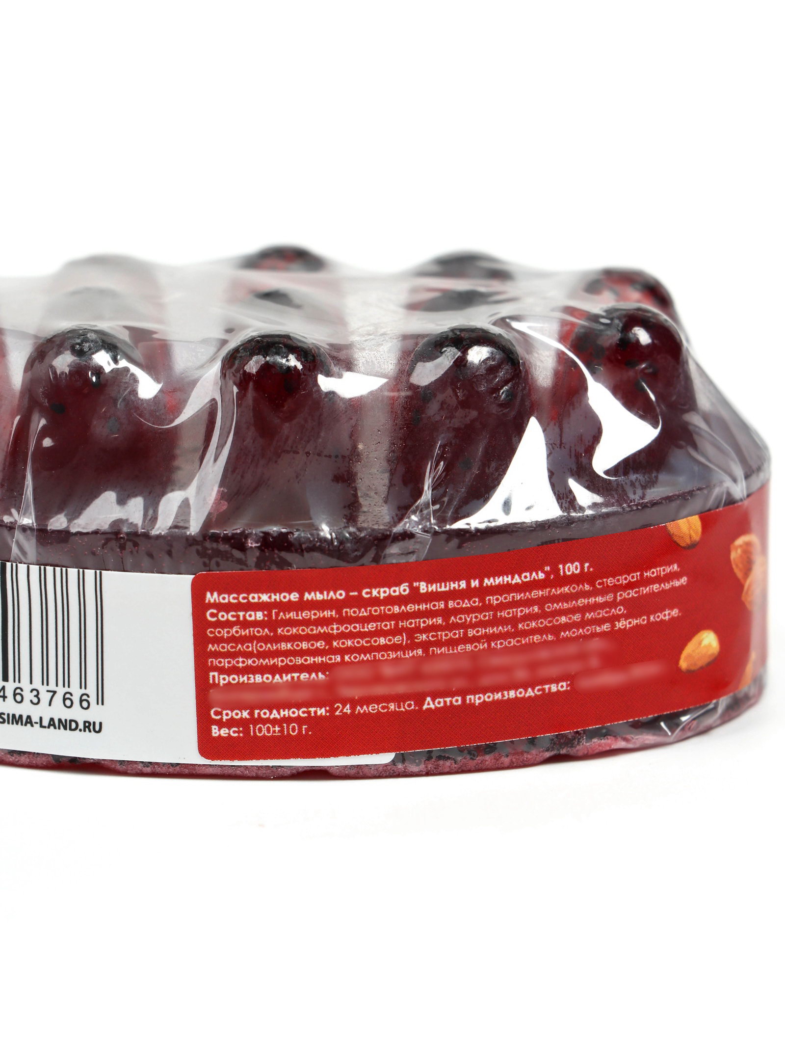 Мыло косметическое массажное "Со скрабом" вишня и миндаль, 100 г, Добропаровъ, Россия