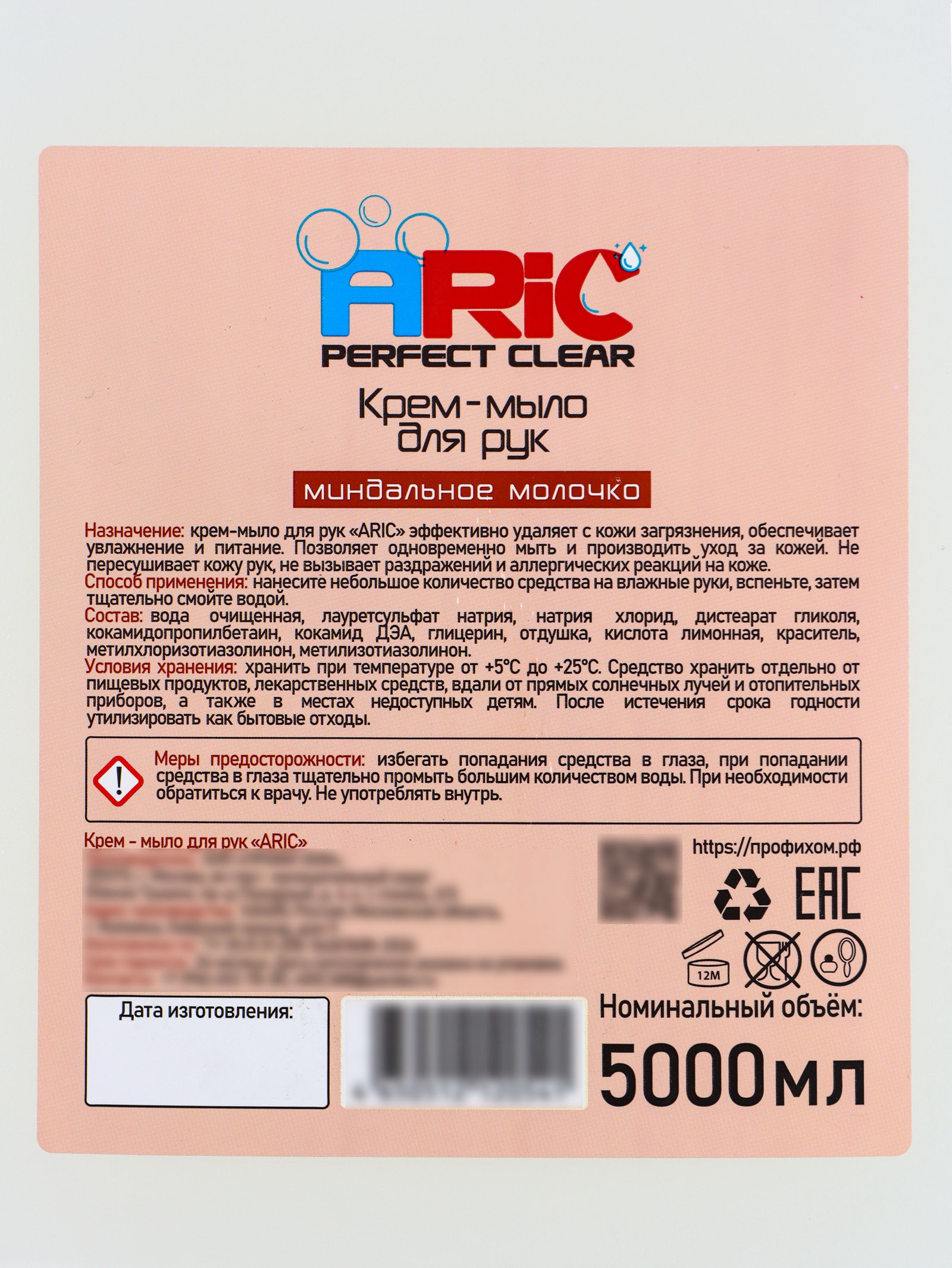 Крем-мыло для рук "Миндальное молочко", гипоаллергенное, 5 л, ARIC, Россия