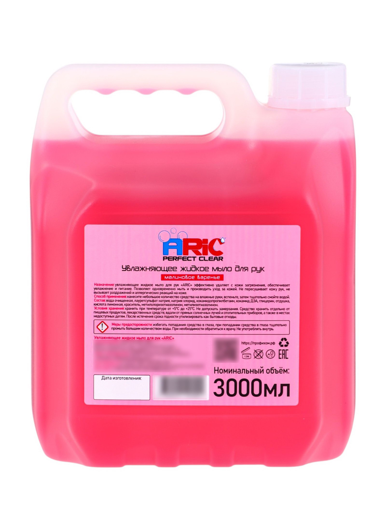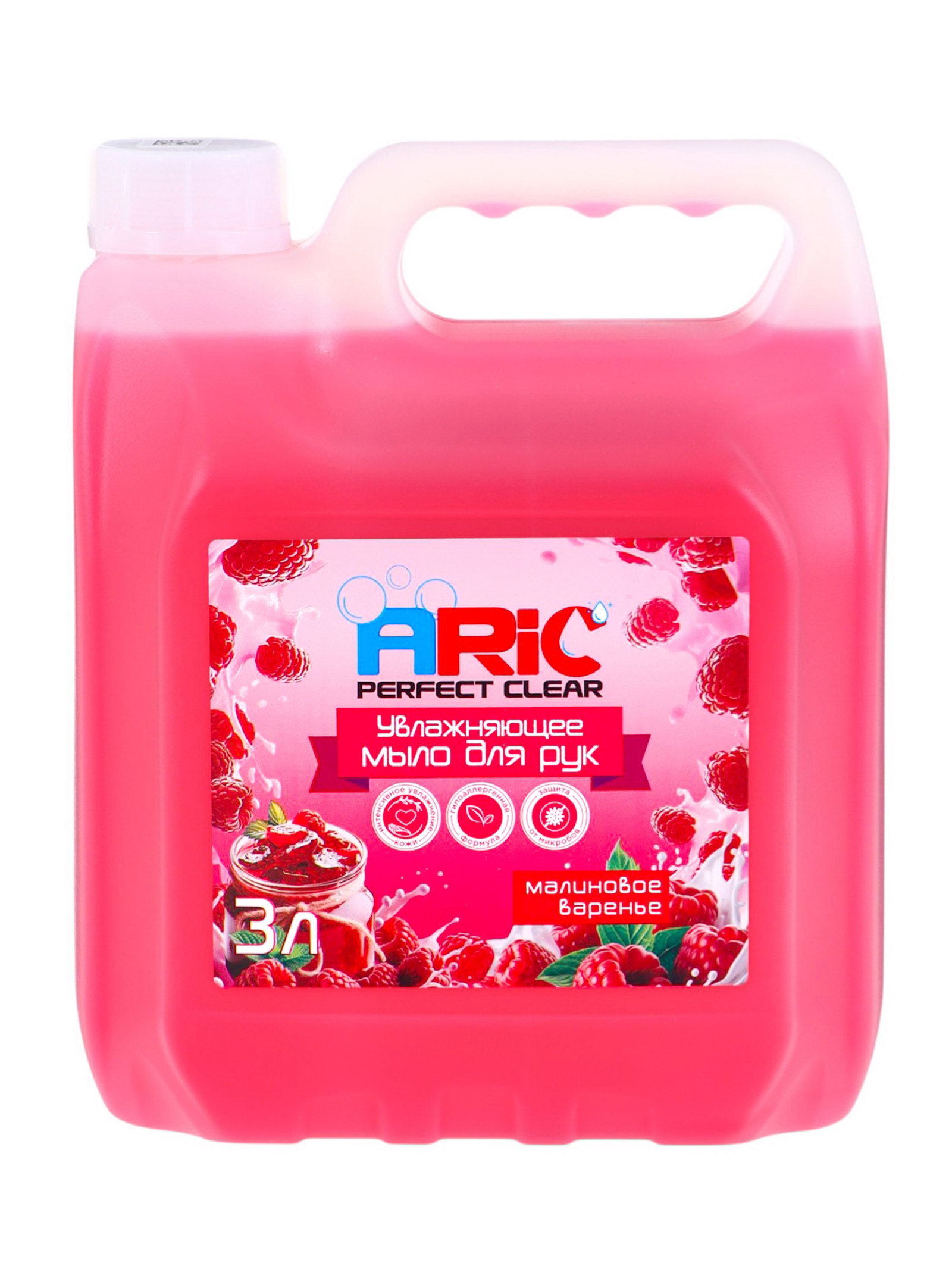 Увлажняющее жидкое мыло для рук "Малиновое варенье", гипоаллергенное, 3 л, ARIC, Россия