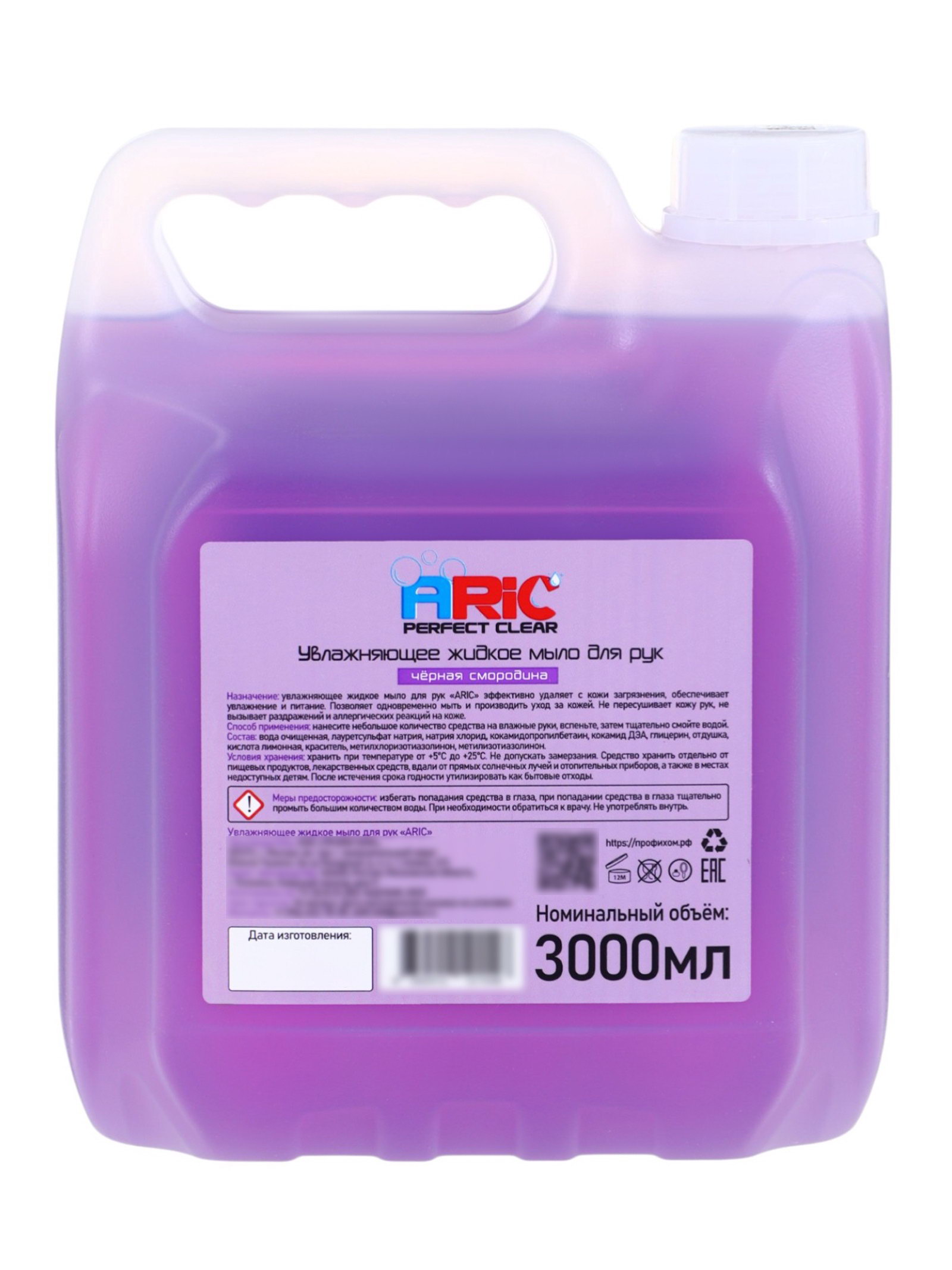 Увлажняющее жидкое мыло для рук "Черная смородина", гипоаллергенное, 3 л, ARIC, Россия
