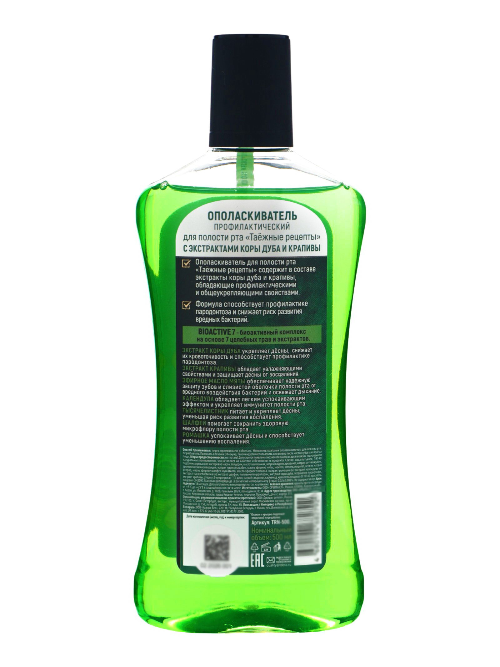 Ополаскиватель для полости рта Таежные рецепты, кора дуба и крапива 500 мл, Таёжные рецепты, Россия