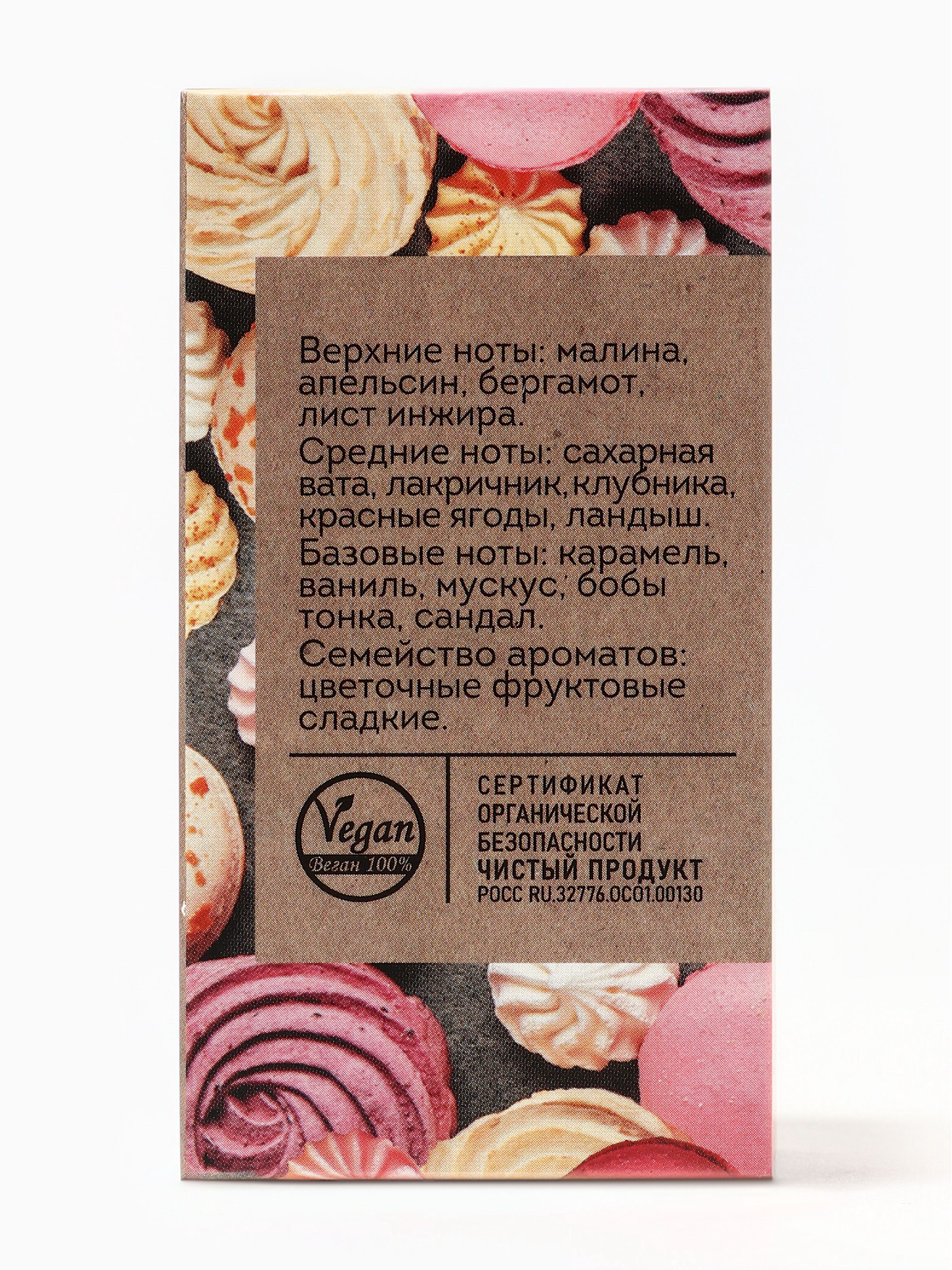 Группа ароматов: Фруктовые, Цветочные Средние ноты: Клубника, Лакричник, Ландыш, Сахарная вата, Ягоды Верхние ноты: Апельсин, Бергамот, Инжир, Малина Базовые ноты: Бобы тонка, Ваниль, Искусственный мускус, Карамель, Сандал/Сантал Размер упаковки: 5.5 x 5.5 x 10 см. tnved: 3307900000 Маркировка: Честный знак Температурное ограничение: Нет Для кого: Для женщины Вид дозатора: Распылитель Вид: Парфюмерная вода | ||