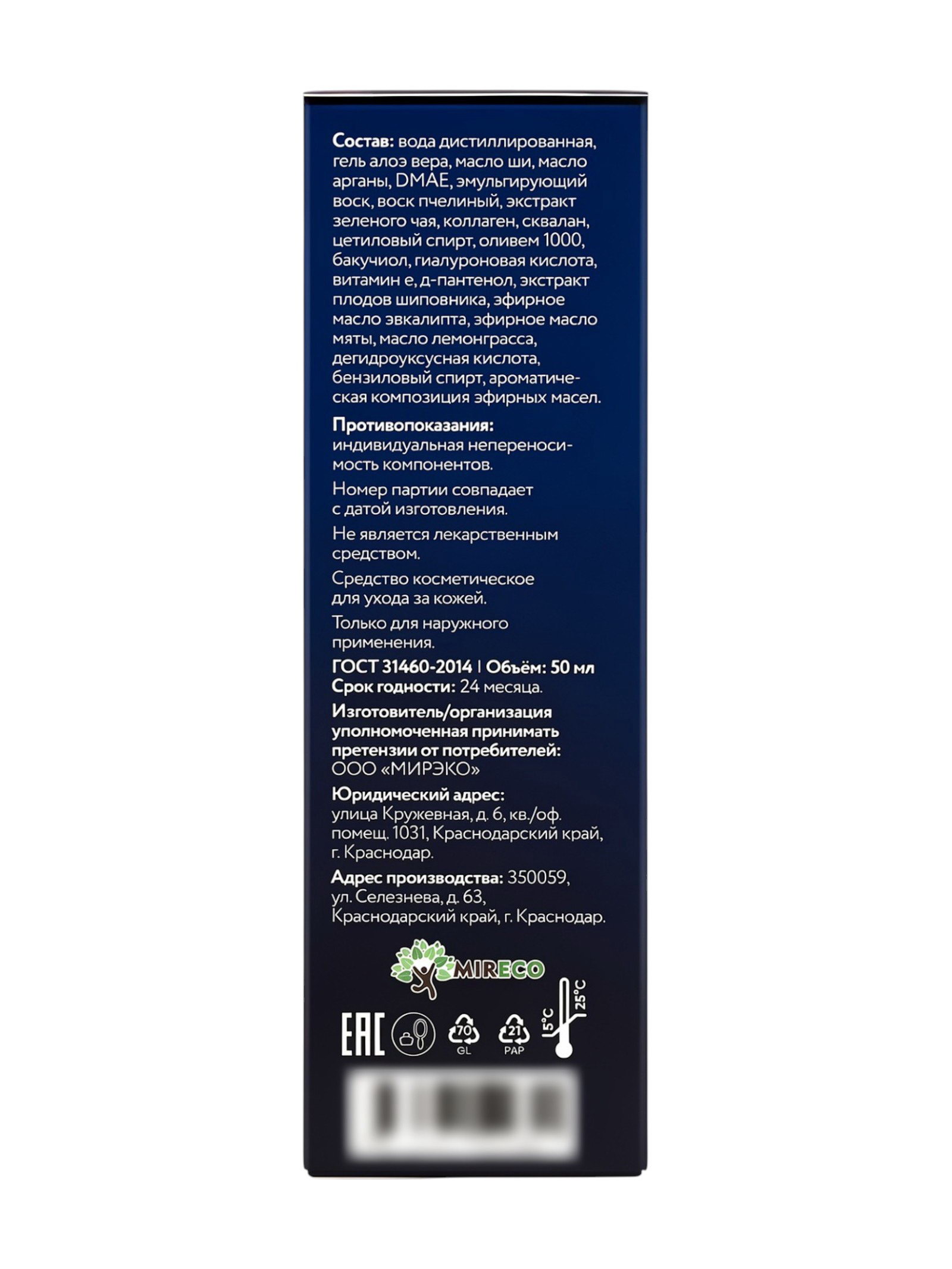 Крем для мужчин anti-age cream for man стекло, 50 мл, MIRECO, Россия