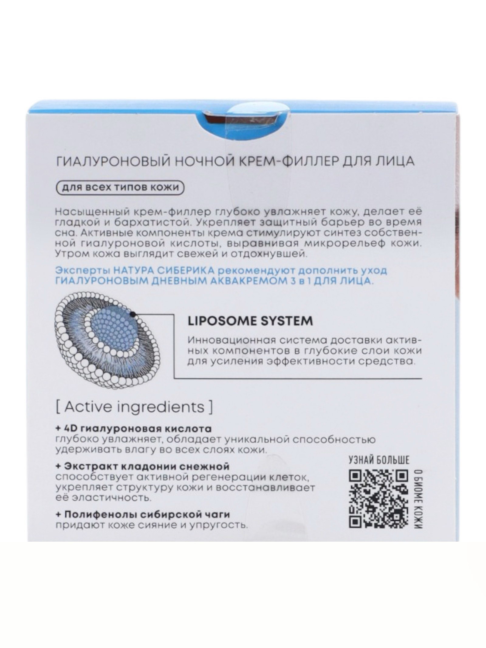 Крем?филлер для лица ночной гиалуроновый NS Lab Biome Hyaluron, 50 мл, Natura Siberica, Россия