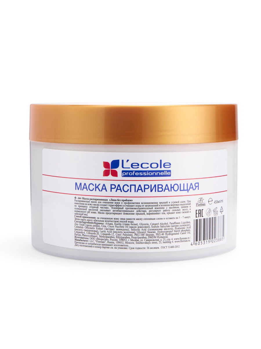 Состав:Aqua, Kaolin (глина белая), Glycerin, Cetearyl Alcohol, Paraffinum Liquidum, Zinc Oxide (оксид цинка), Urea, Cocos Nucifera Oil (масло кокосовое), Sodium Salicylate (натрия салицилат), Calendula Officinalis Extract (экстракт календулы), Salicylic Acid (салициловая кислота), Hyaluronic Acid (кислота гиалуроновая), Lactic Acid (кислота молочная), Glyceryl Stearate, Hydroxypropyl Starch phosphate, Ceteareth-6, Ceteareth-20, Ceteareth-12, Cetyl Palmitate, PEG-100 Stearate, PEG-40 Hydrogenated Castor Oil, Parfum, Phenoxyethanol, Methylparaben, Ethylparaben, Propylparaben, DMDM Hydantoin. Способ применения:На очищенную кожу лица нанести маску сплошным слоем и оставить на 5 – 7 минут. Затем смыть маску обильным количеством тёплой воды. | ||