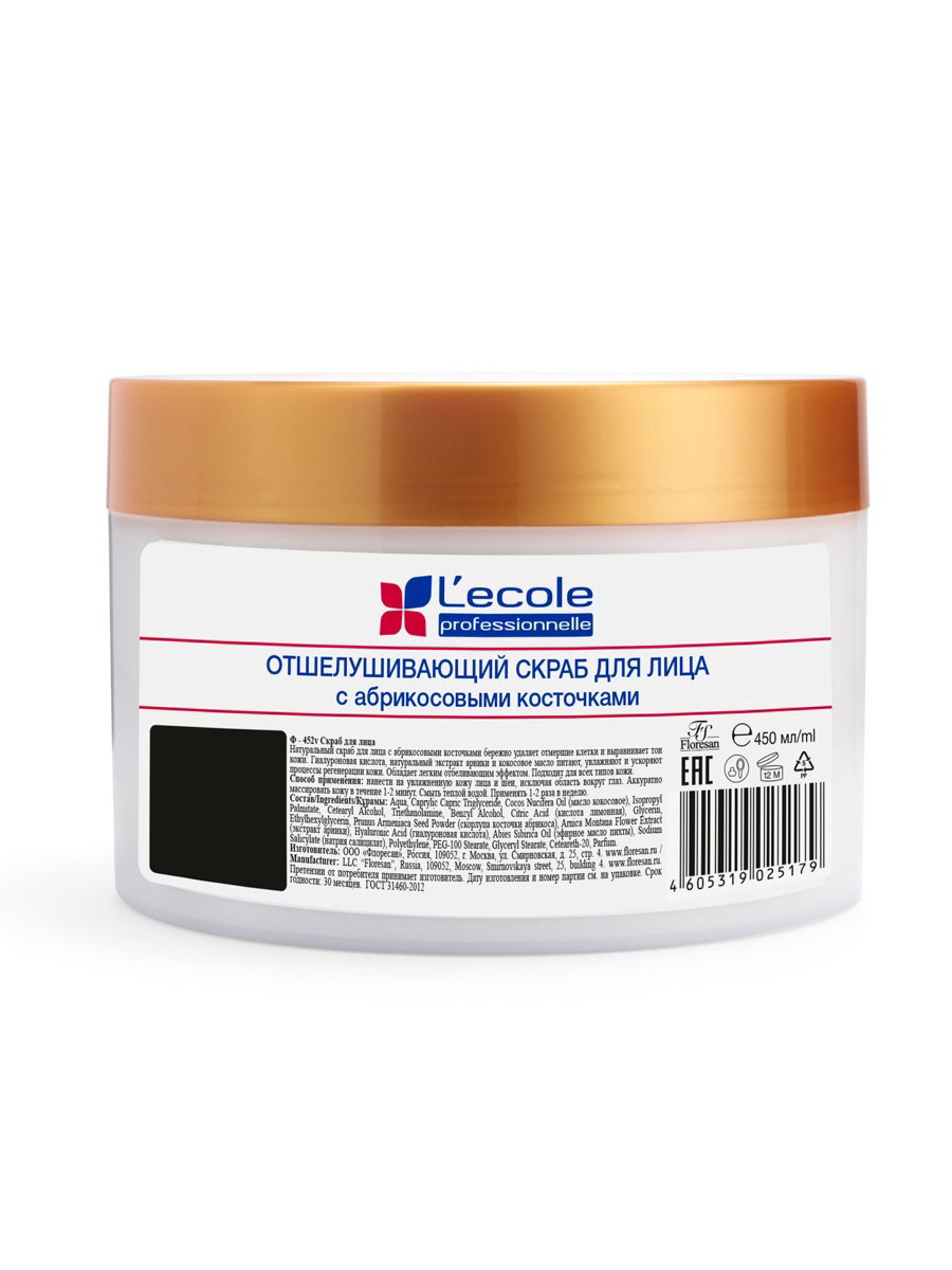 Скраб для лица отшелушивающий с абрикосовыми косточками, 450 г, Floresan, Россия