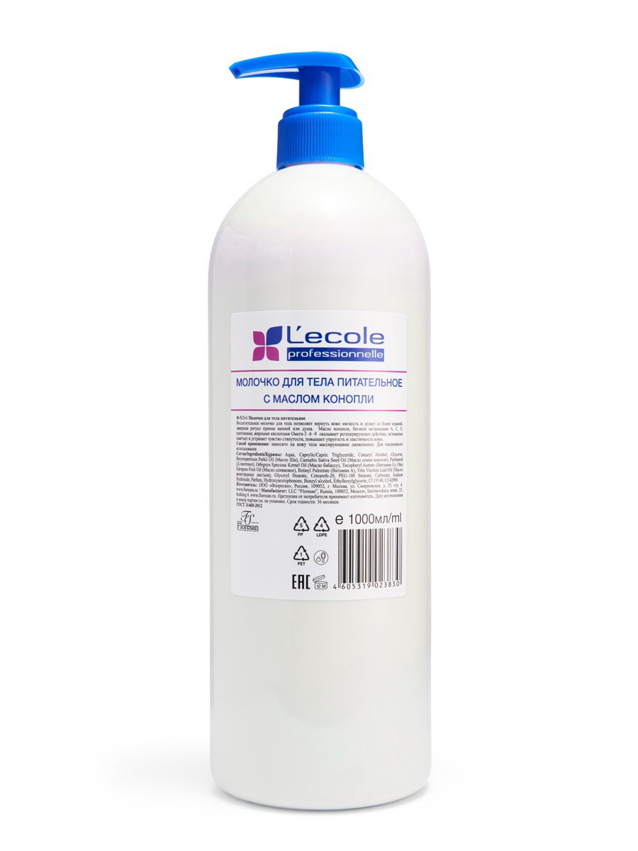 Молочко для тела питательное с маслом конопли, 1000 мл, Floresan, Россия