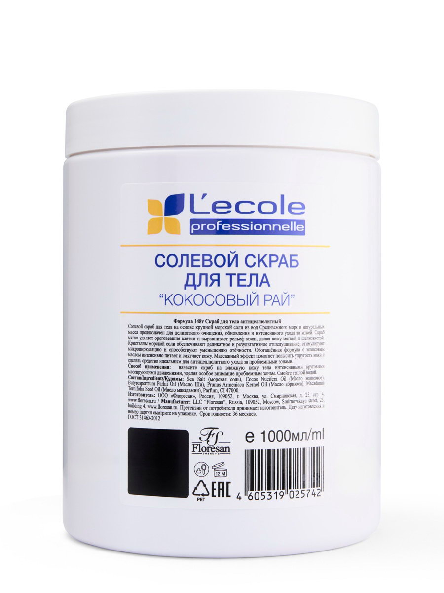 Скраб для тела солевой кокосовый, 1000 г, Floresan, Россия