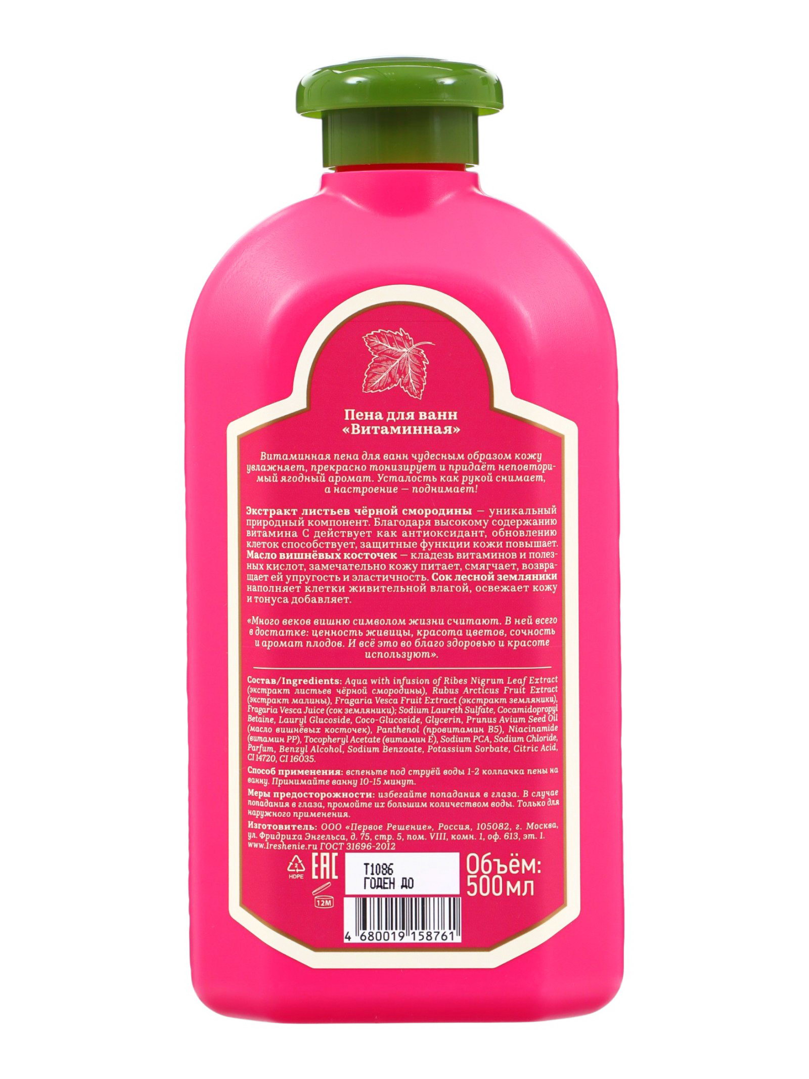 Пена для ванн "Витаминная" РБА "Сибирская травница", 500 мл, Рецепты бабушки Агафьи, Россия