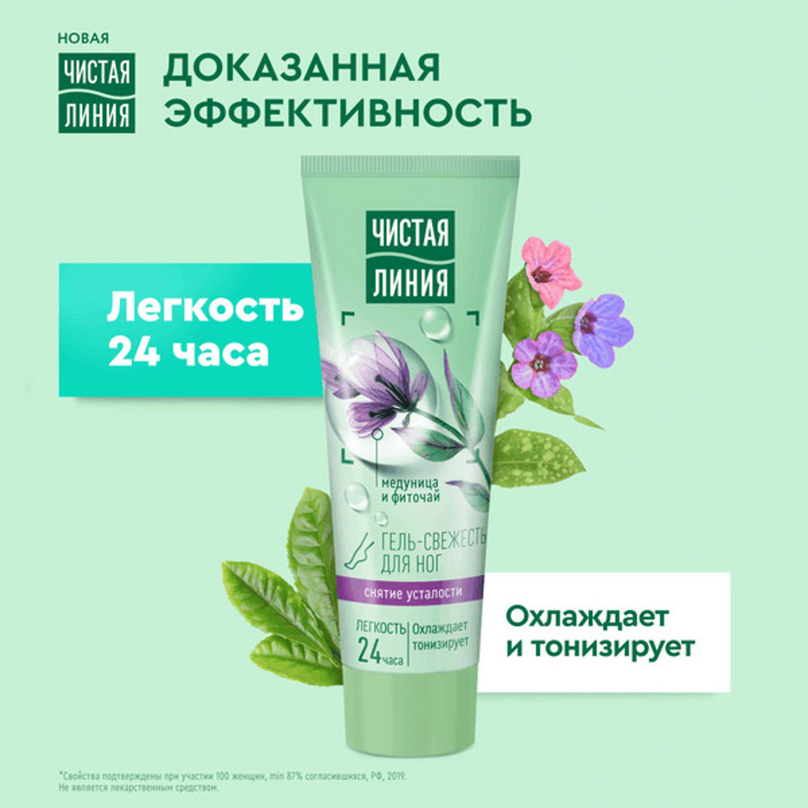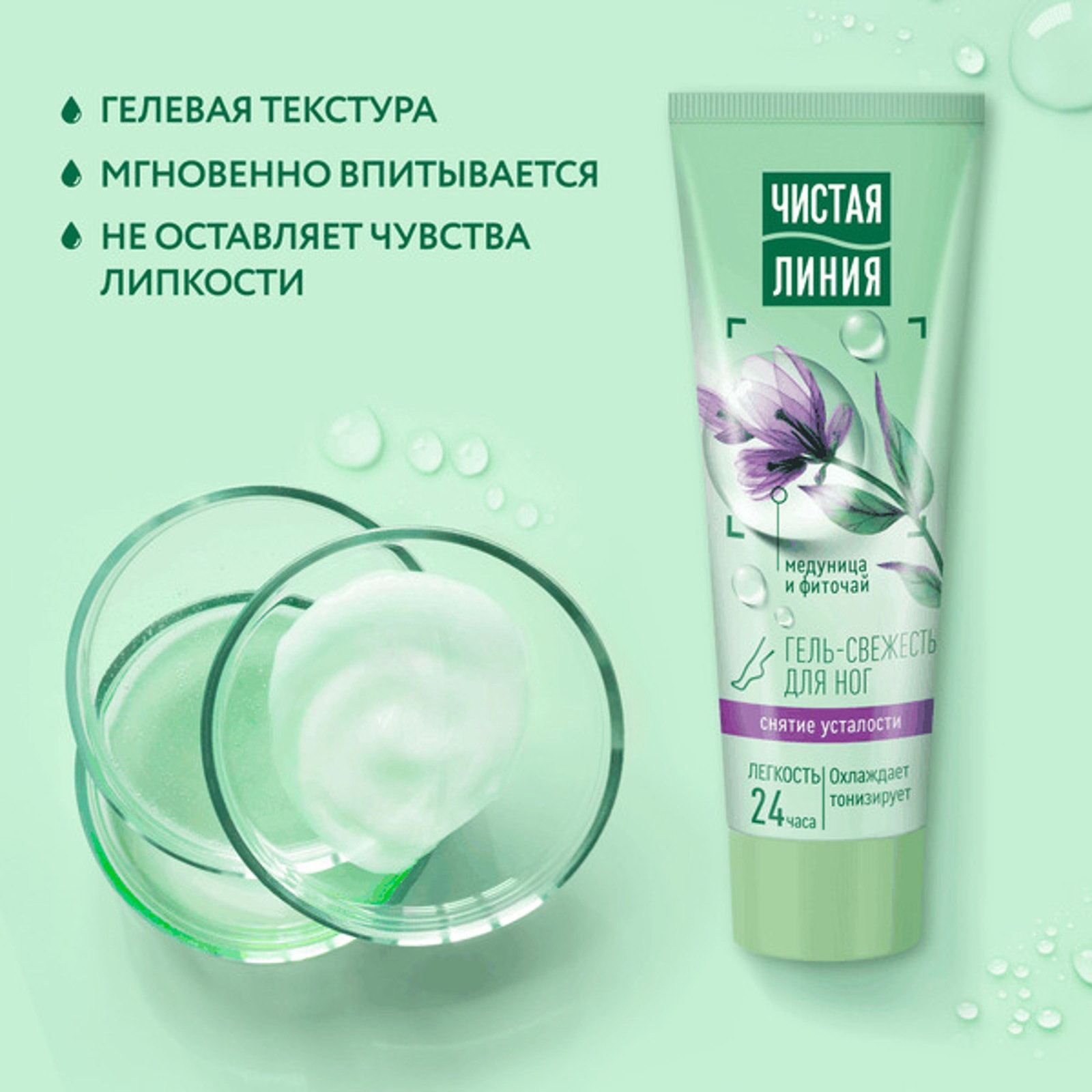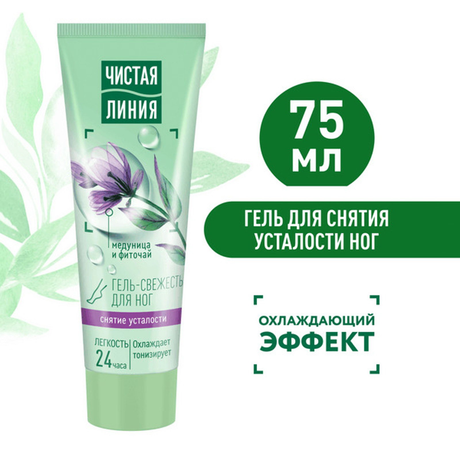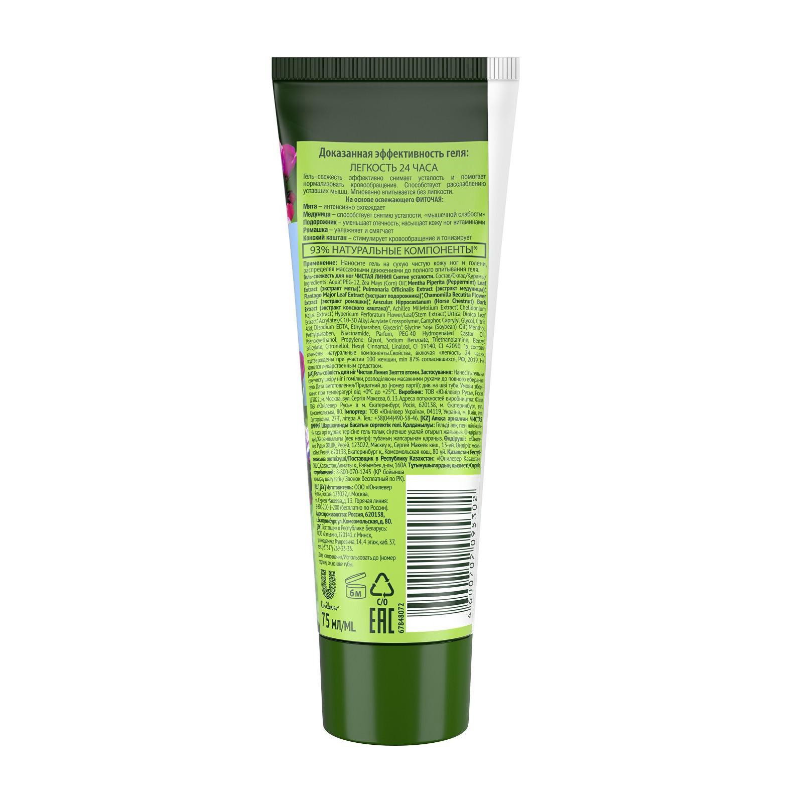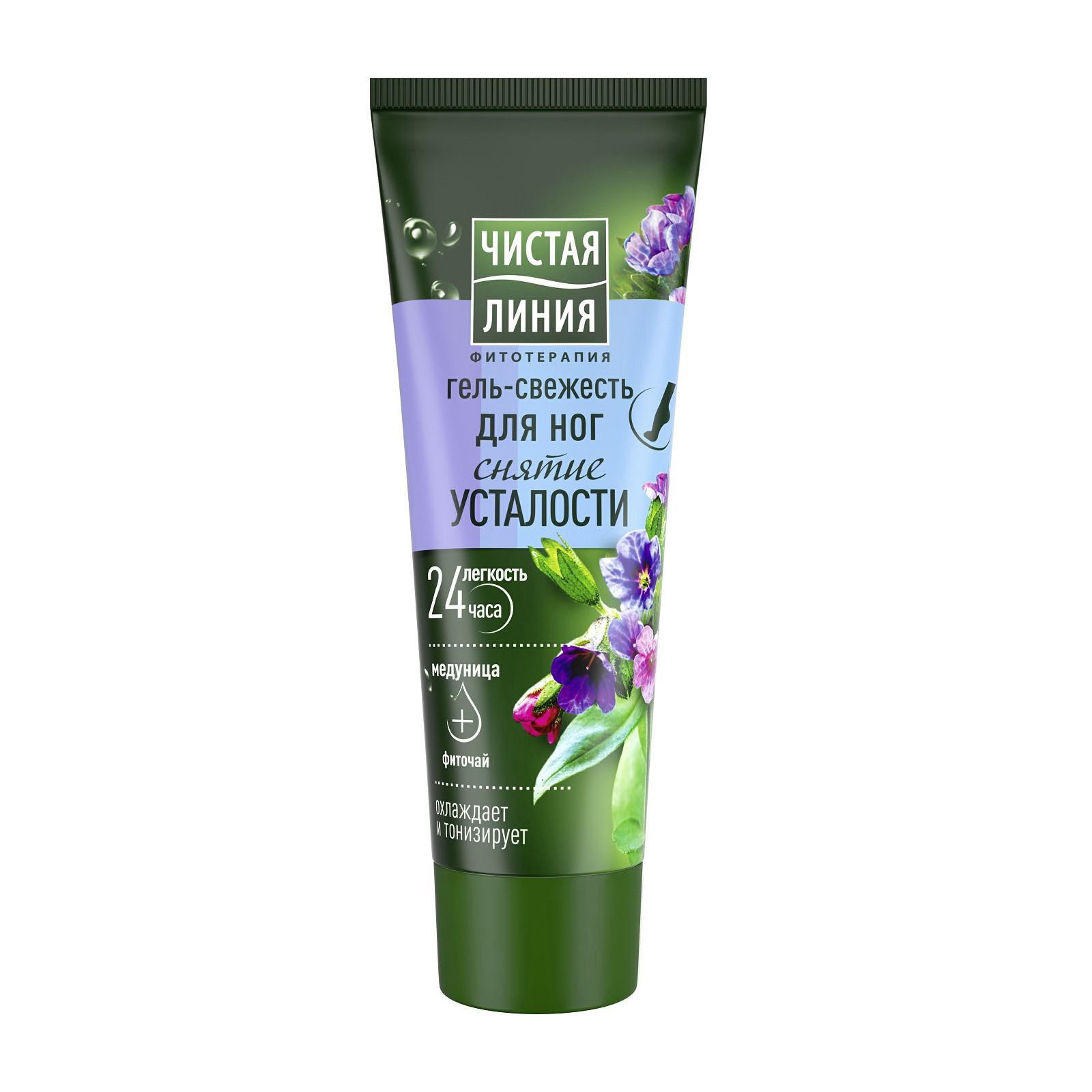 Гель-свежесть для ног "Снятие усталости", мята и медуница, 75 мл, 5.5x3.5x15.4 см., Чистая линия, Россия