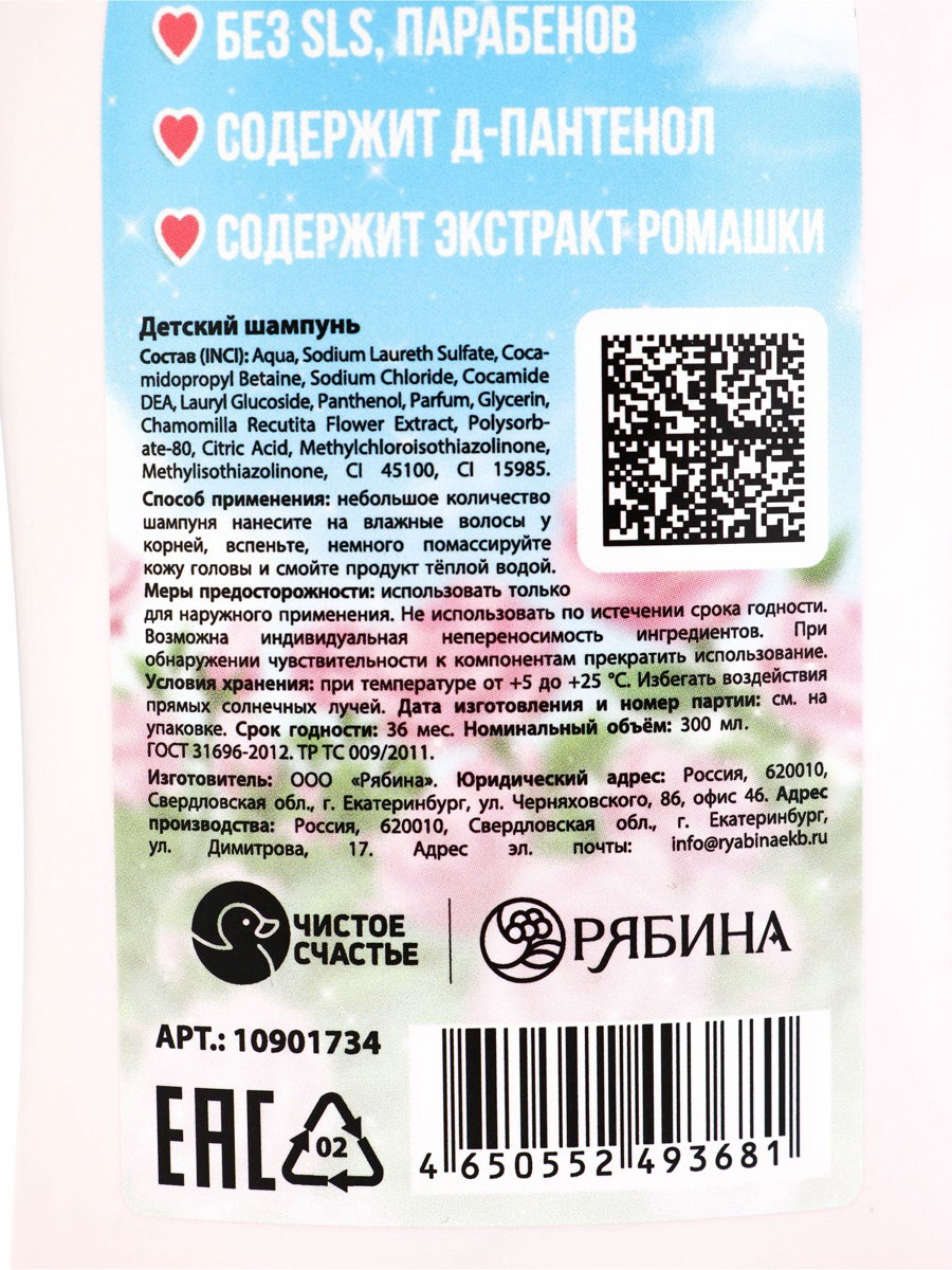 Детский шампунь для волос, аромат: арбузная жвачка, 300 мл, Кошечка, 300 мл., Чистое счастье, Россия