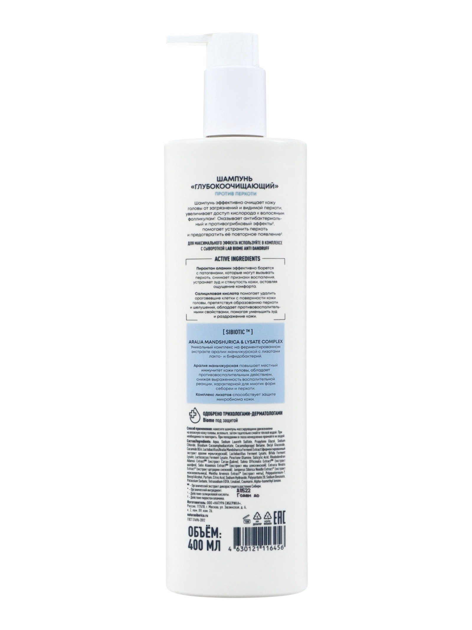 Шампунь глубокоочищающий против перхоти NS Lab Biome ANTI-DANDRUFF, 400 мл, 400 мл., Natura Siberica, Россия