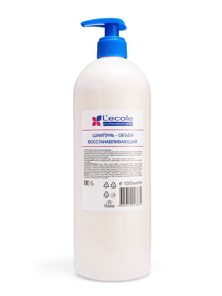 Шампунь-объем для волос восстанавливающий, 1000 мл, Floresan, Россия
